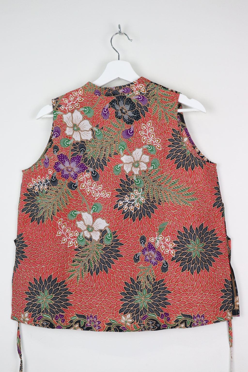 Made of 100% cotton batik. This top has a flattering oriental neckline.