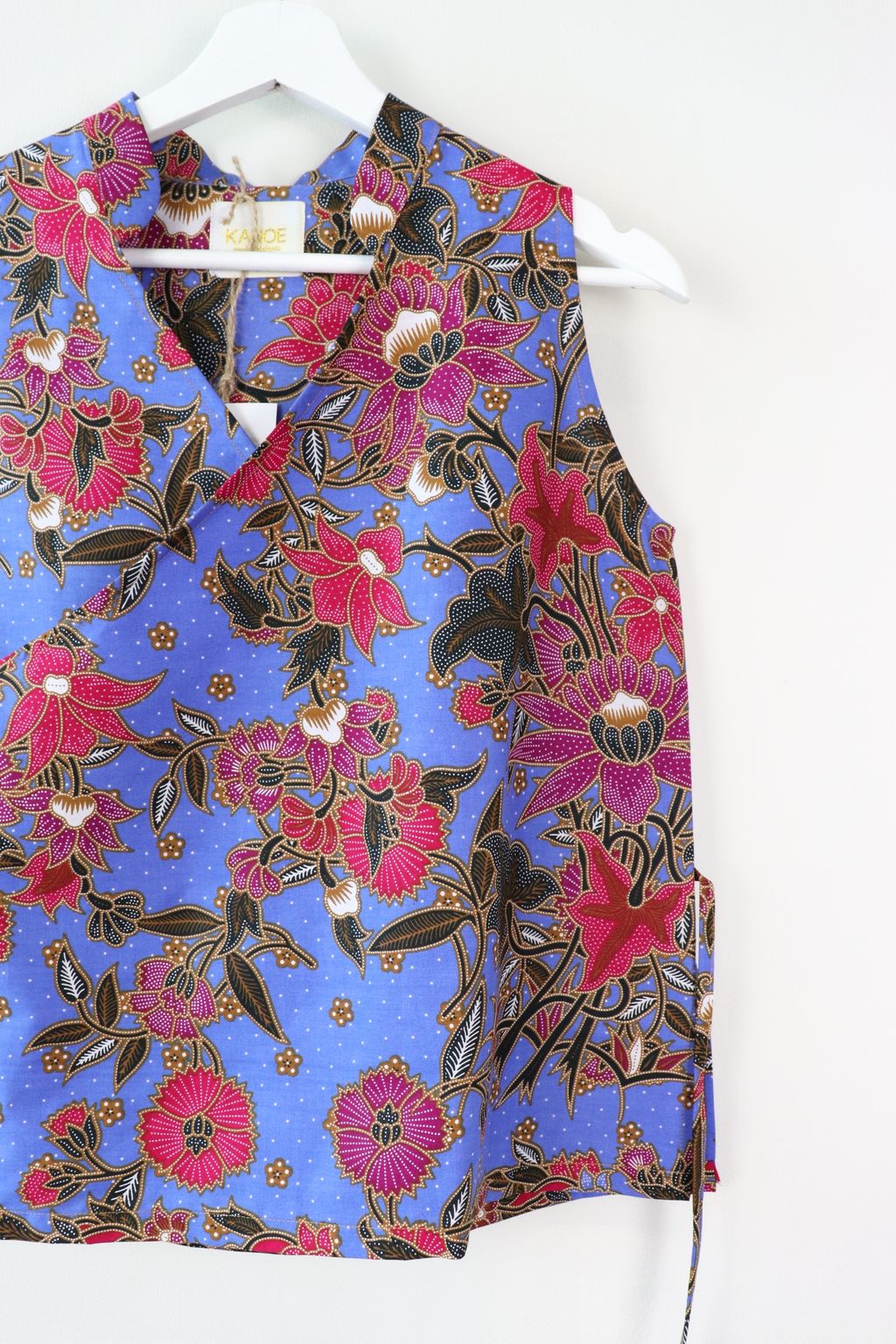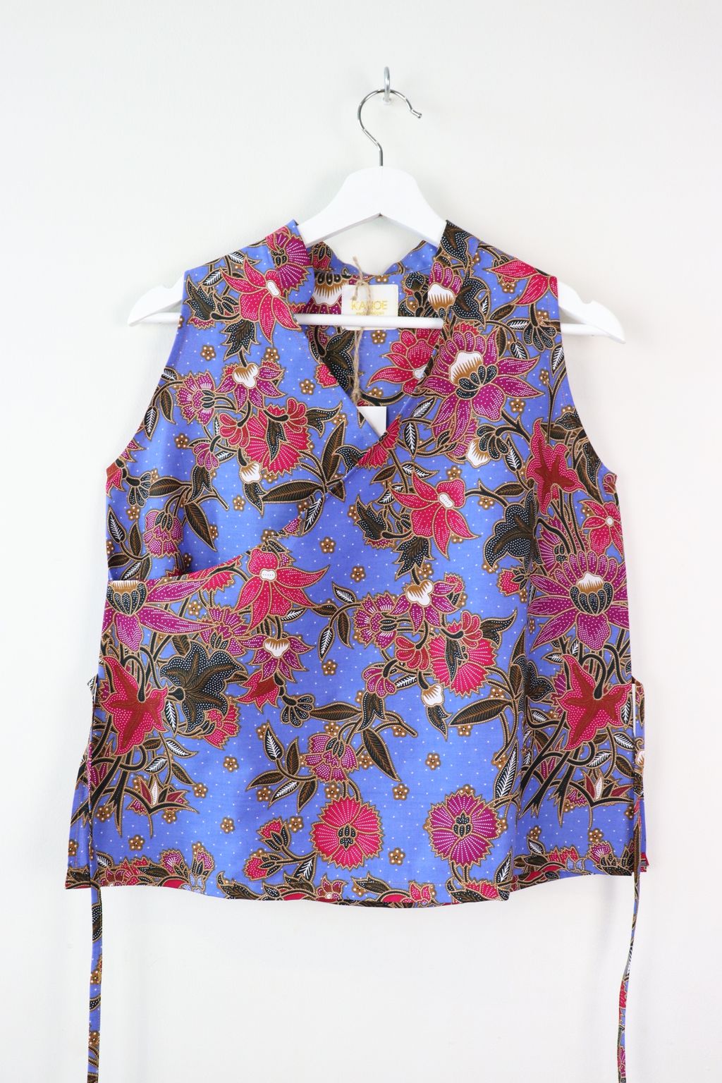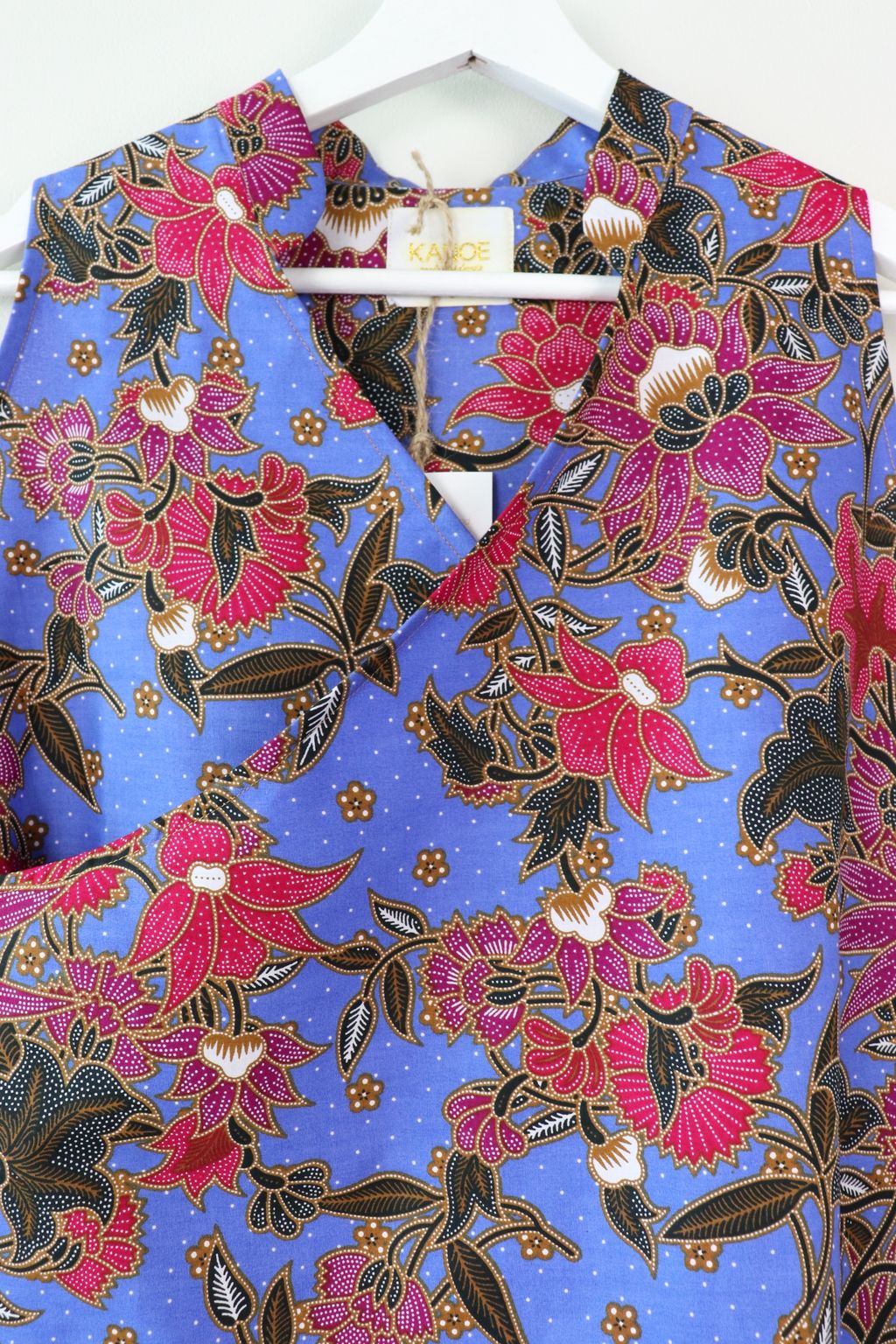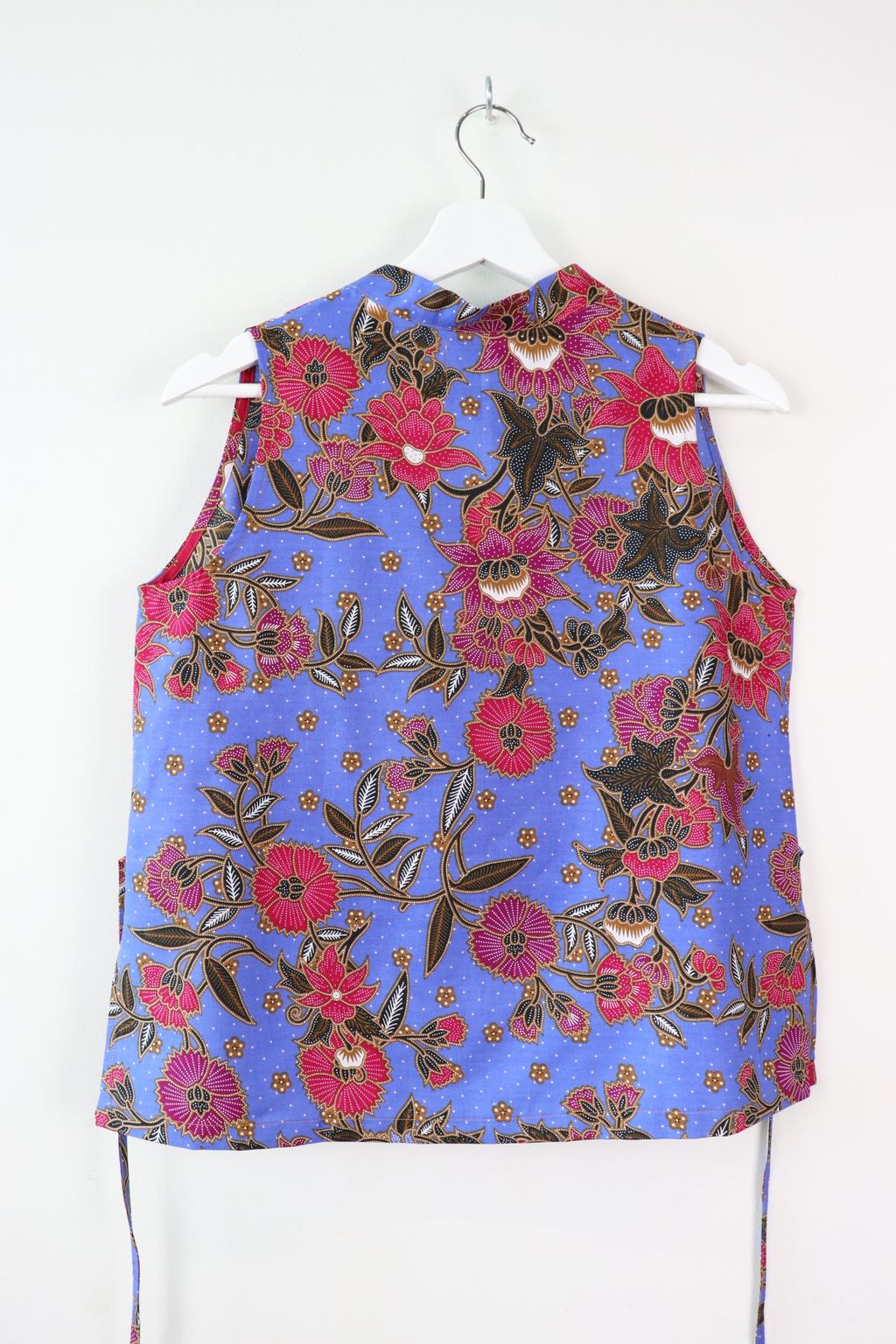Made of 100% cotton batik. This top has a flattering oriental neckline.