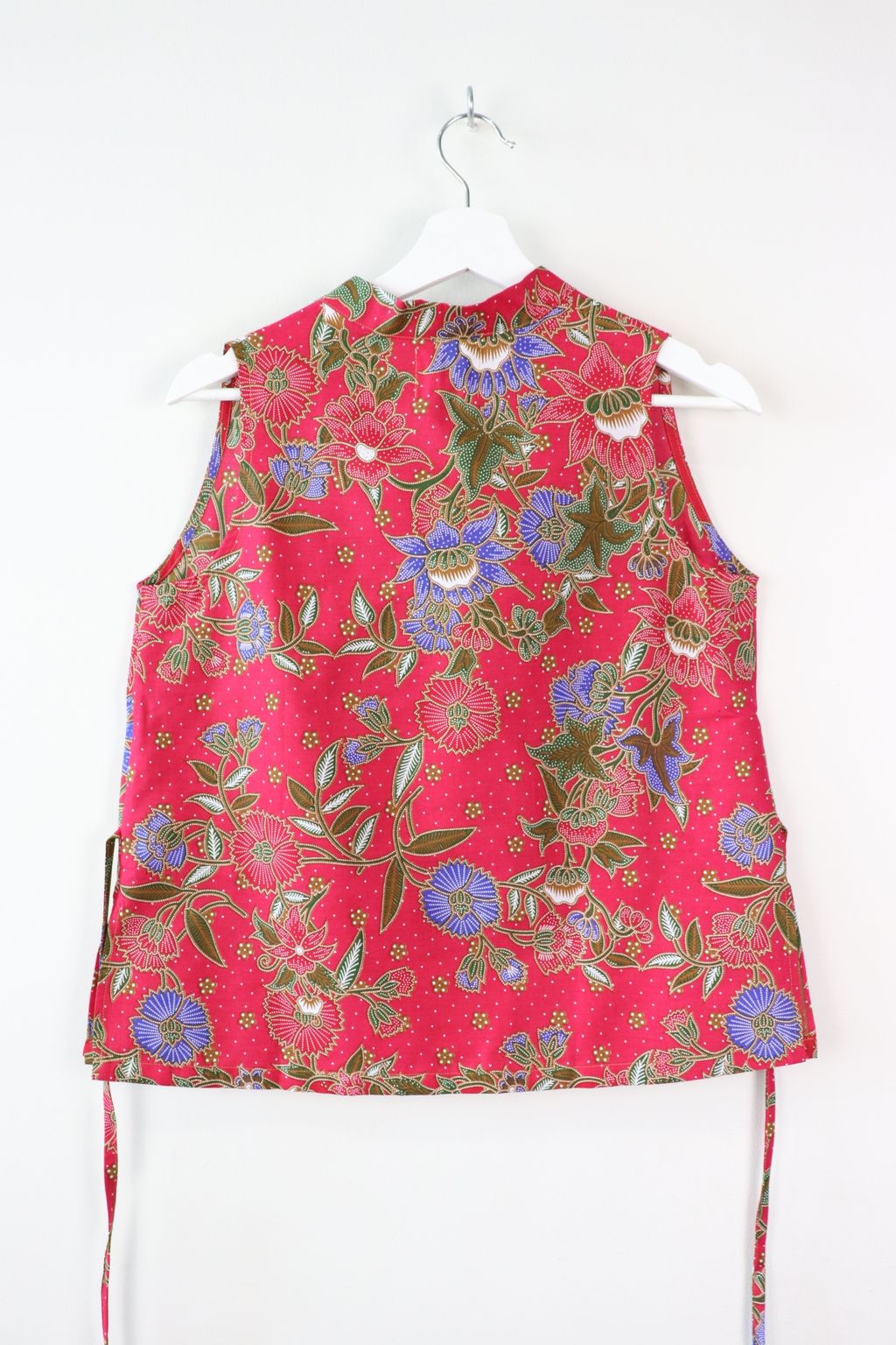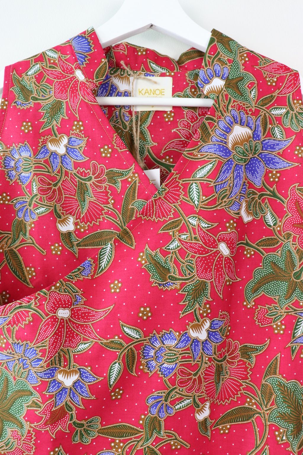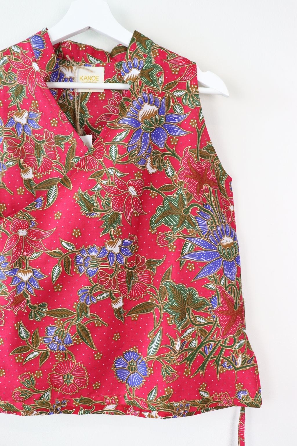 Made of 100% cotton batik. This top has a flattering oriental neckline.