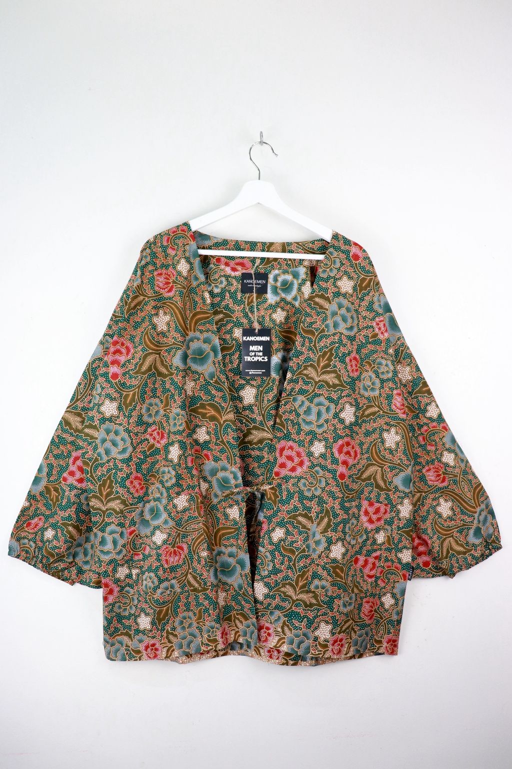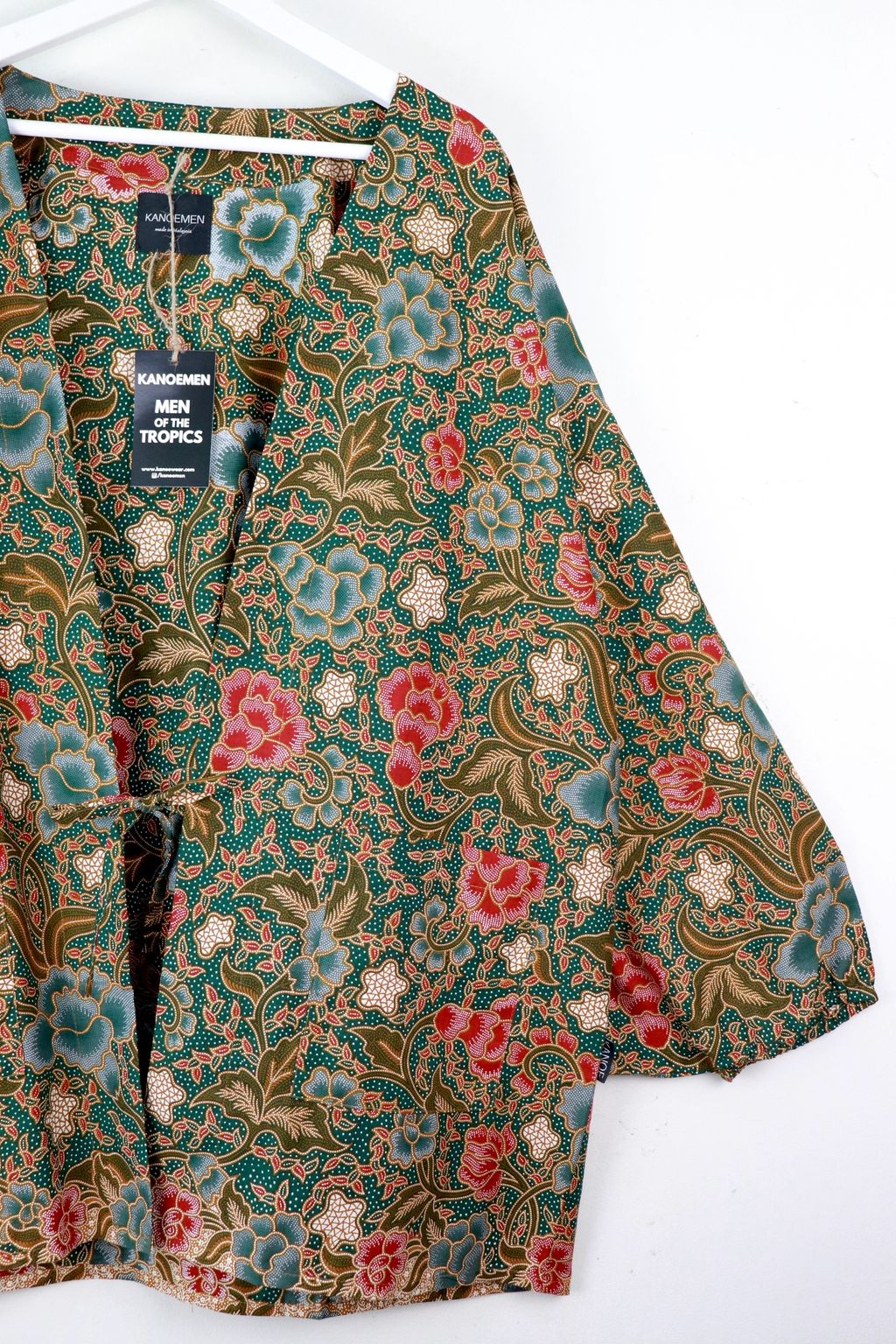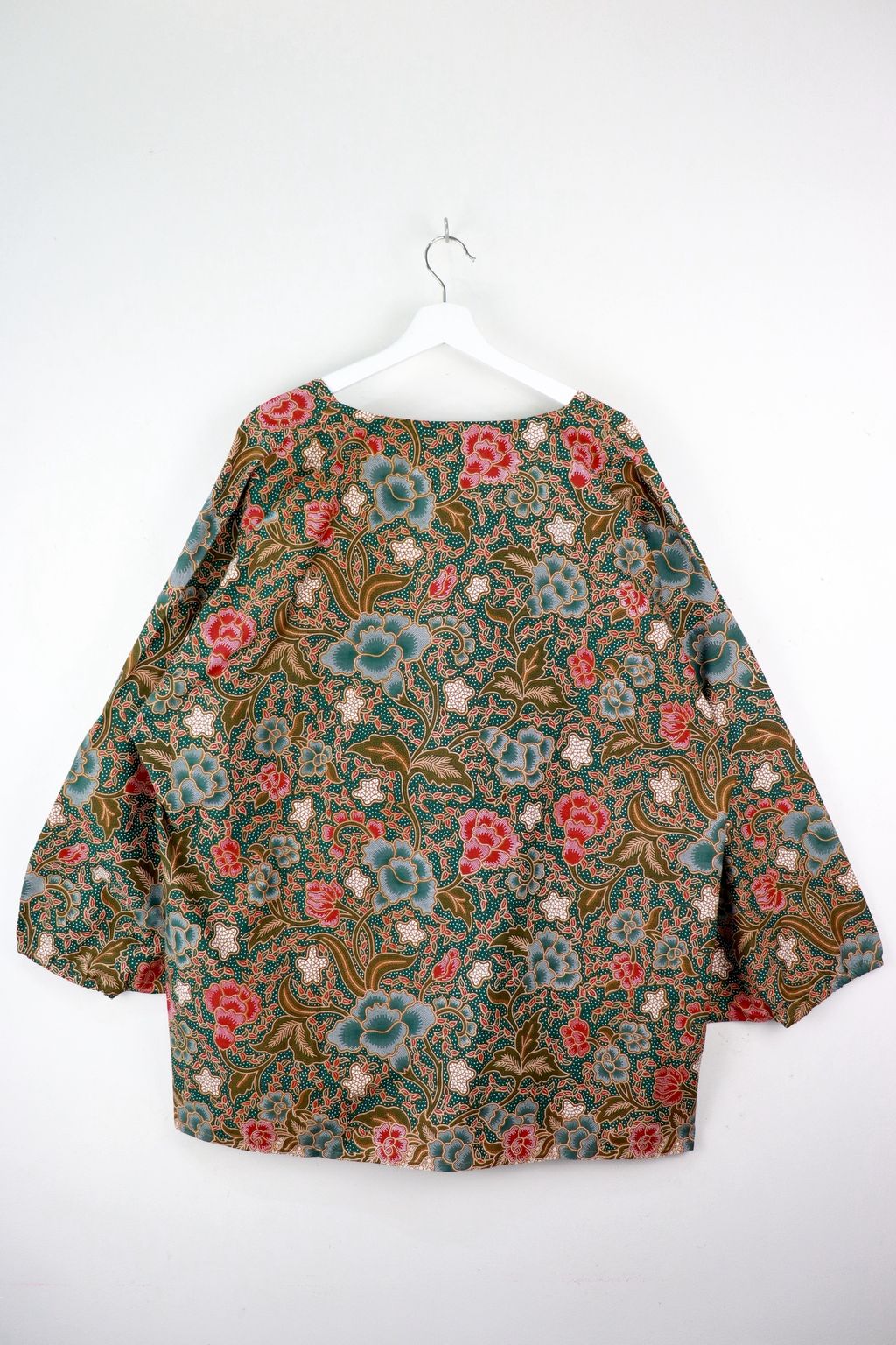 The key features are the curved sleeves and the elasticized end of the sleeves.