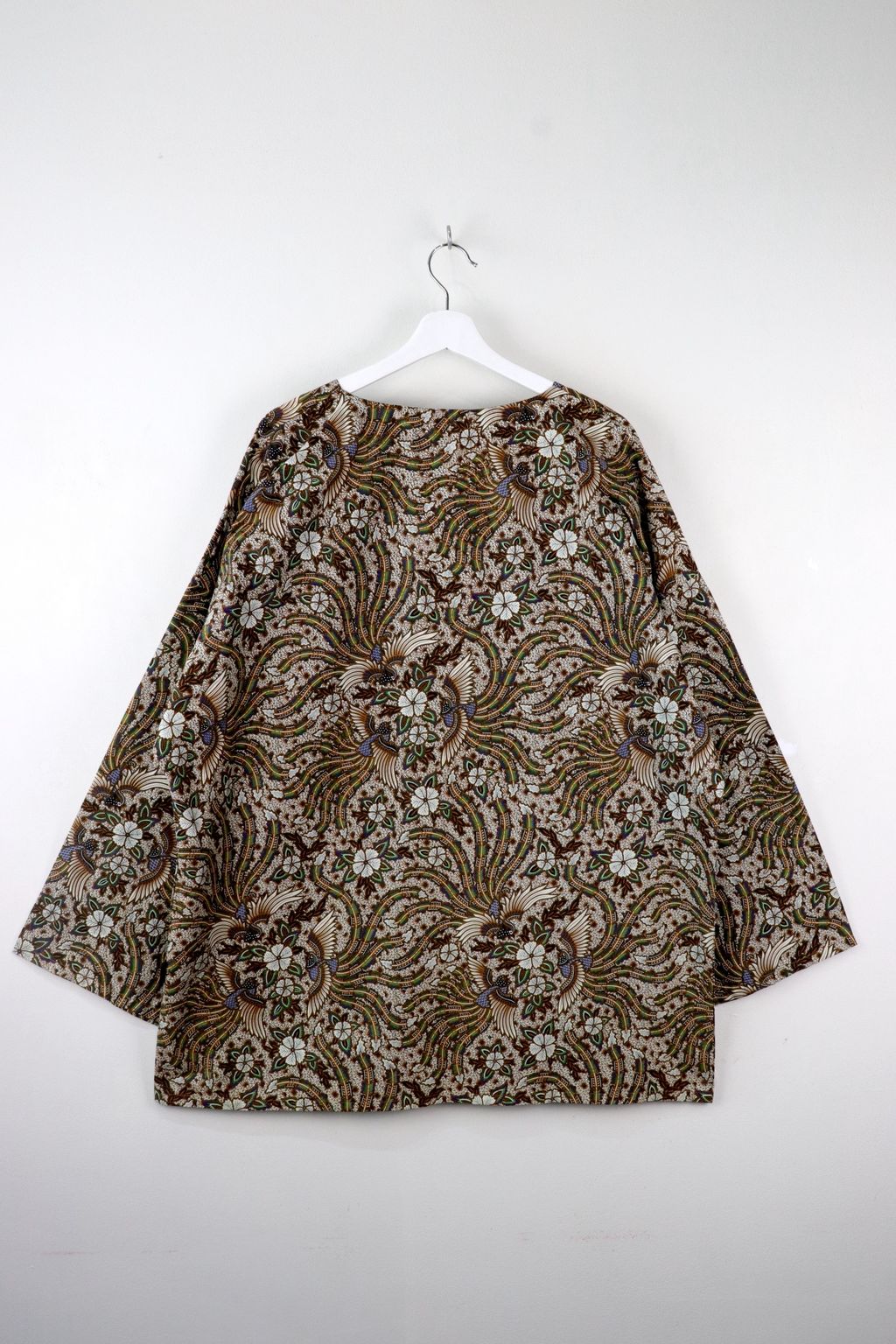 KANOEMEN Batik Kimono Basic - Feather Swirl (Blue & Green)