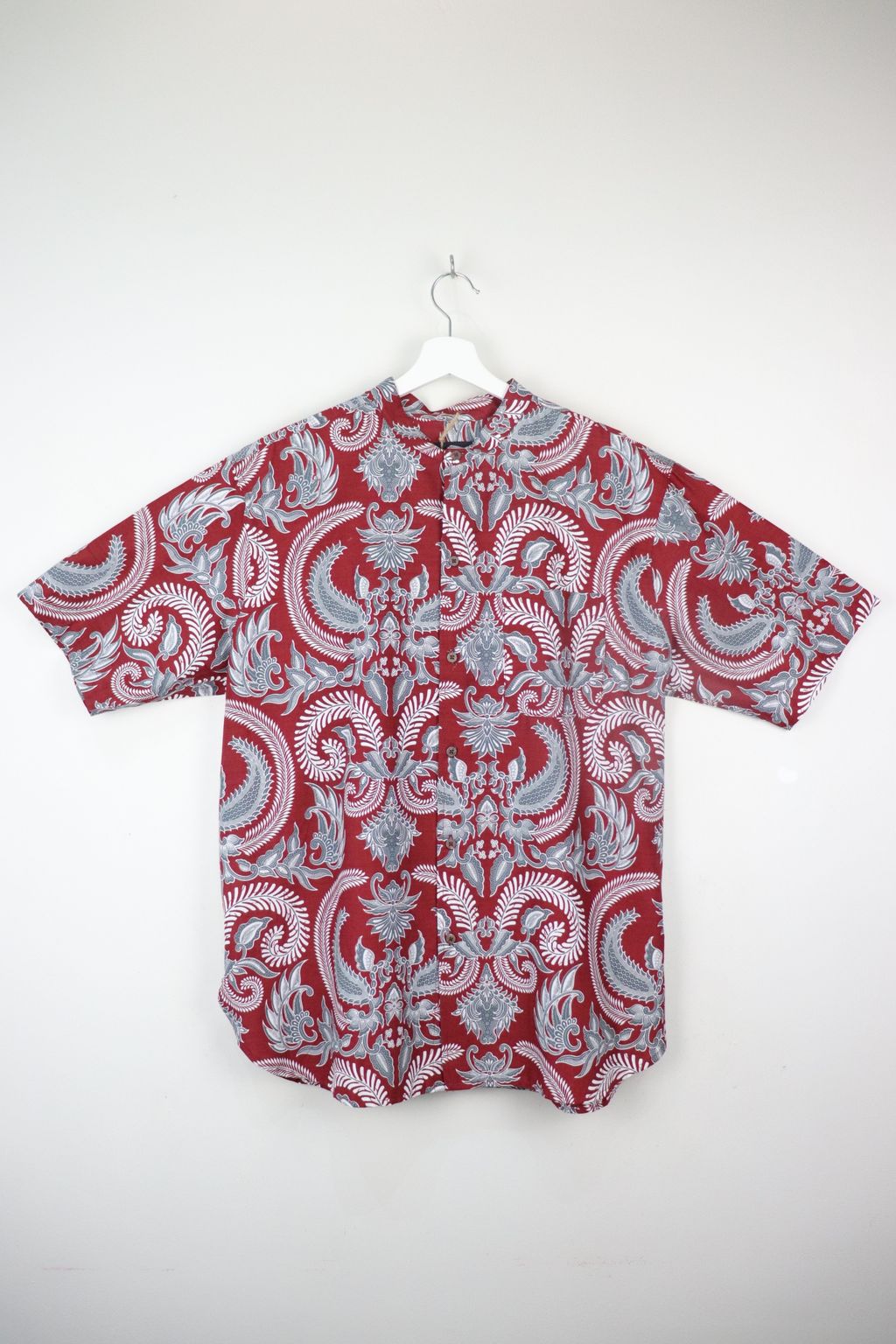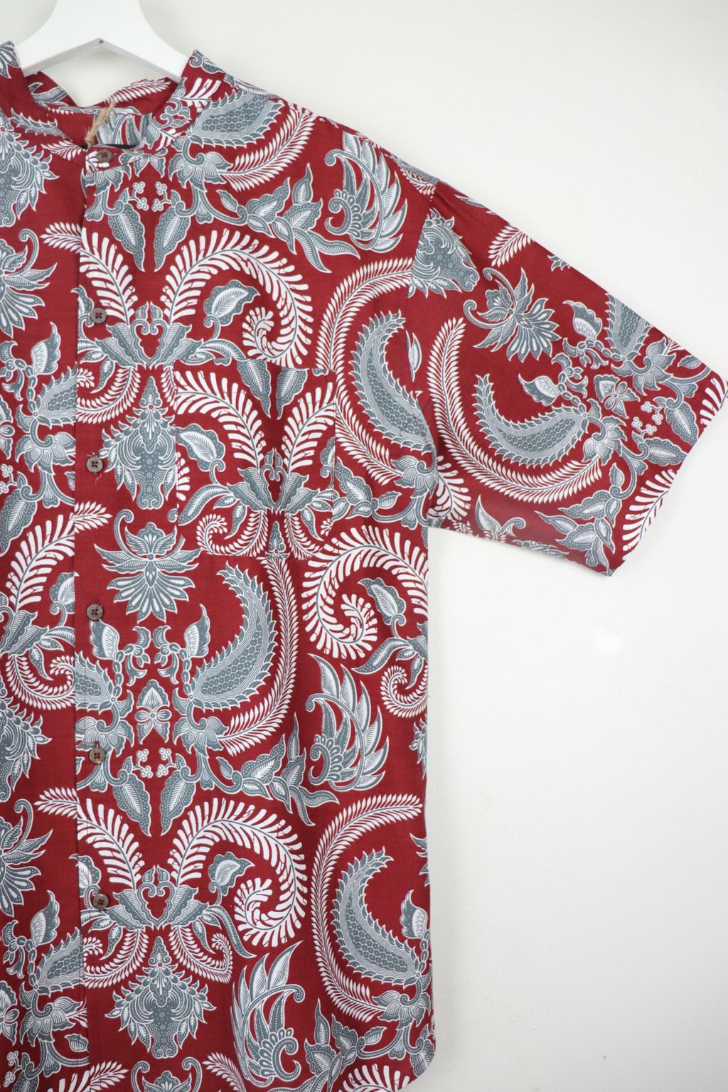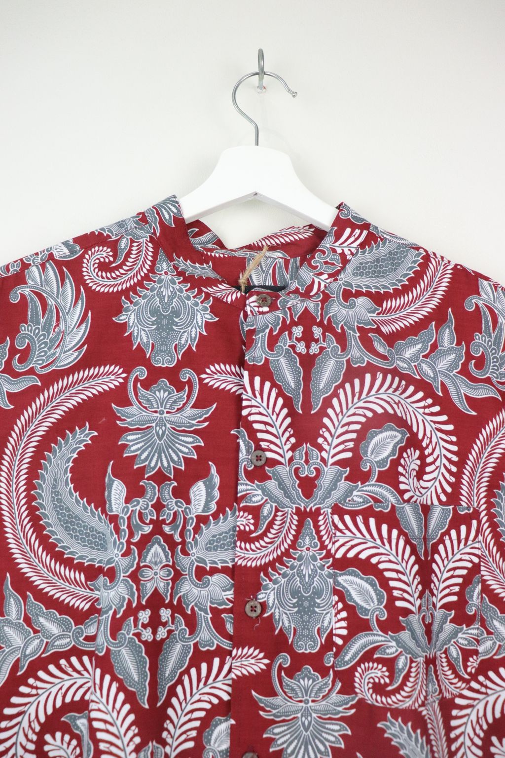 KANOEMEN Stand Collar Batik Shirt - Apple Crisp XL [ New Fit ]