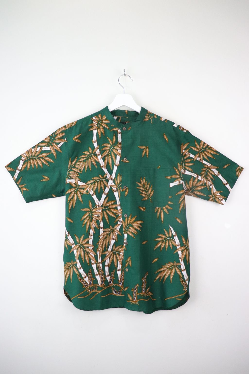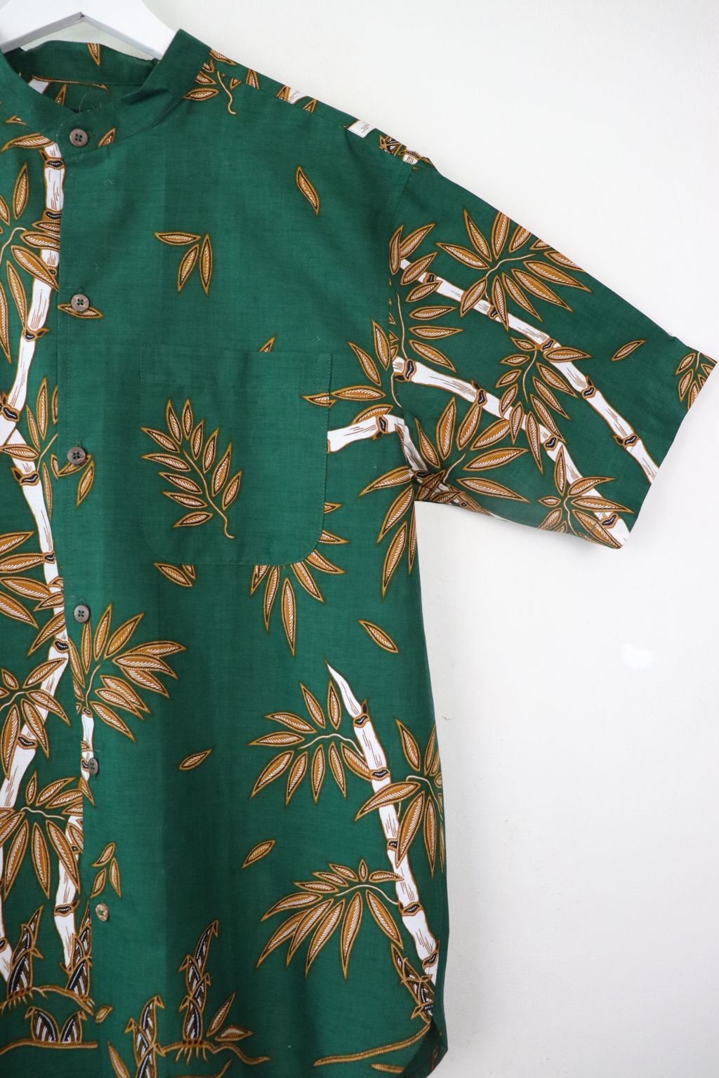 KANOEMEN Stand Collar Batik Shirt - Bamboo Nori M [ New Fit ]