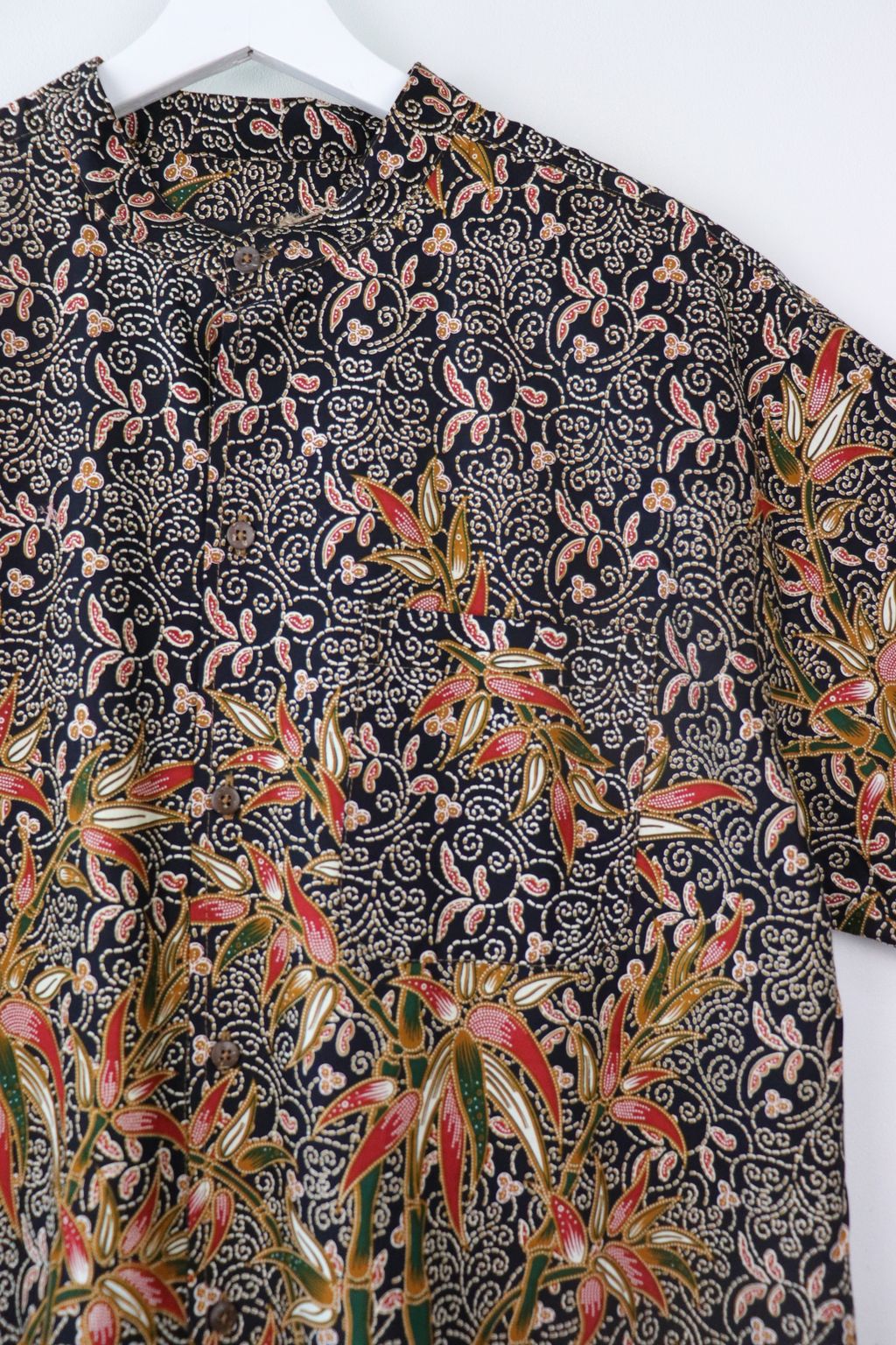 KANOEMEN Stand Collar Batik Shirt - Black Rain L XL [ New Fit ]