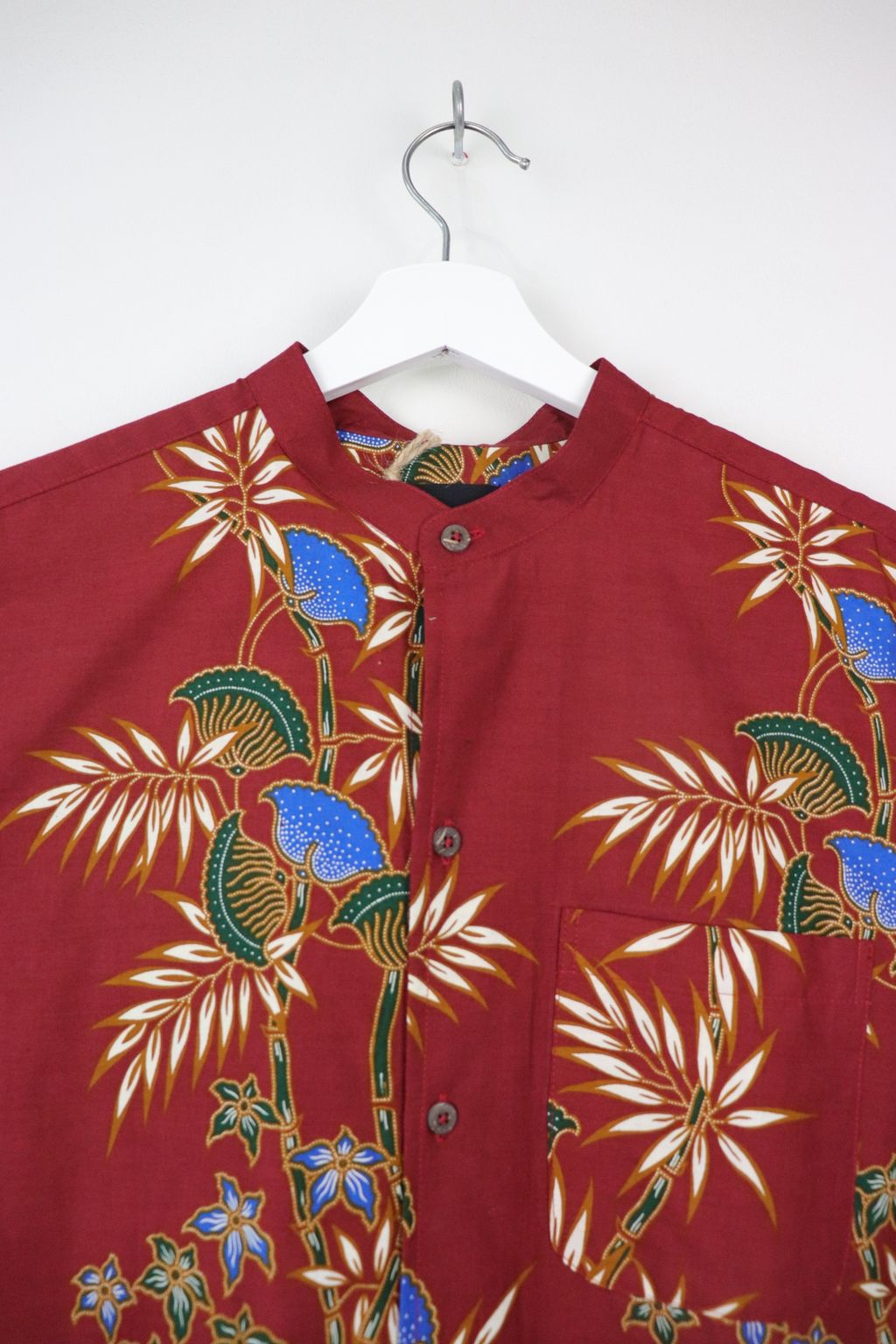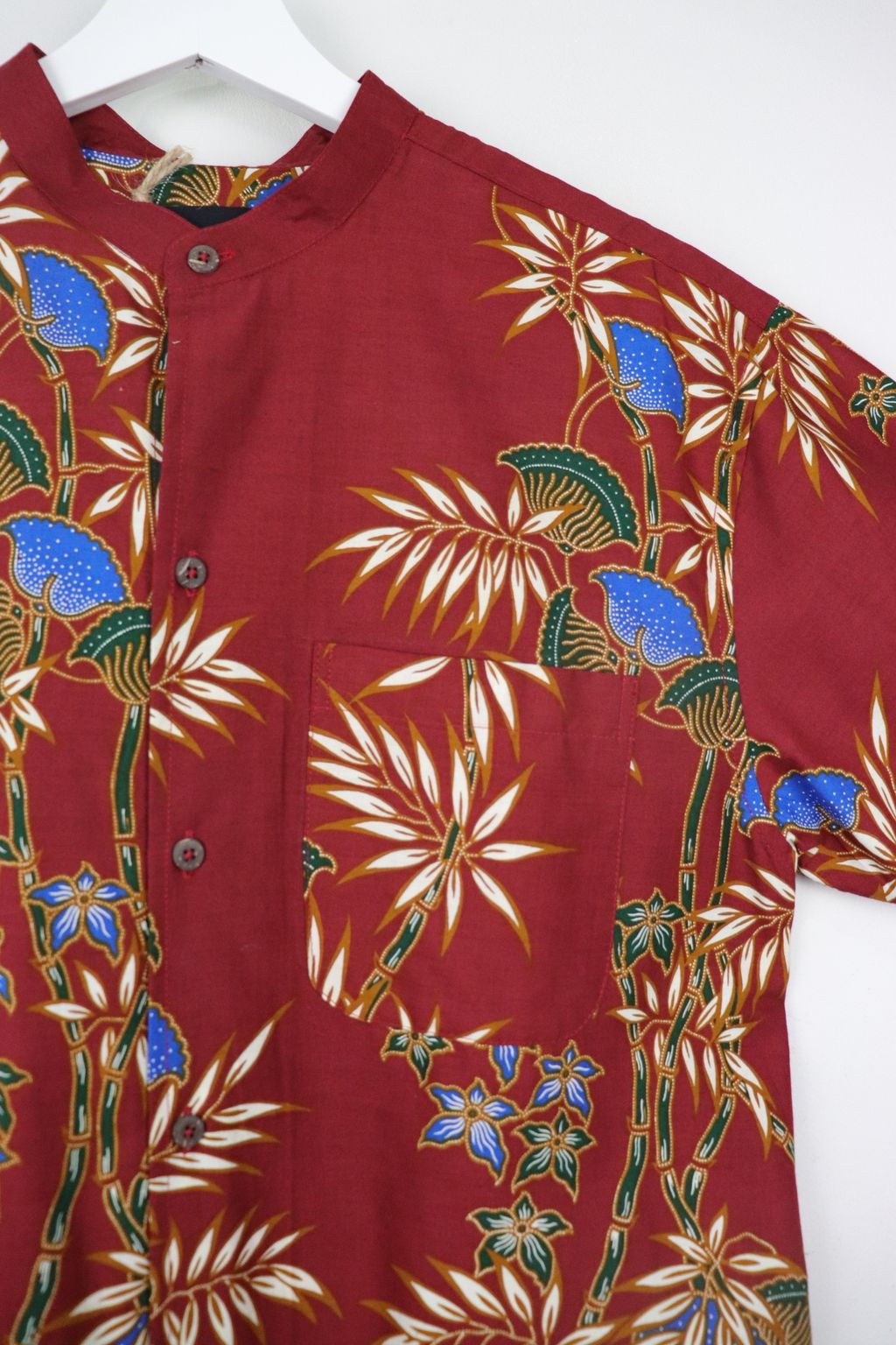 KANOEMEN Stand Collar Batik Shirt - Forest Berry M [ New Fit ]