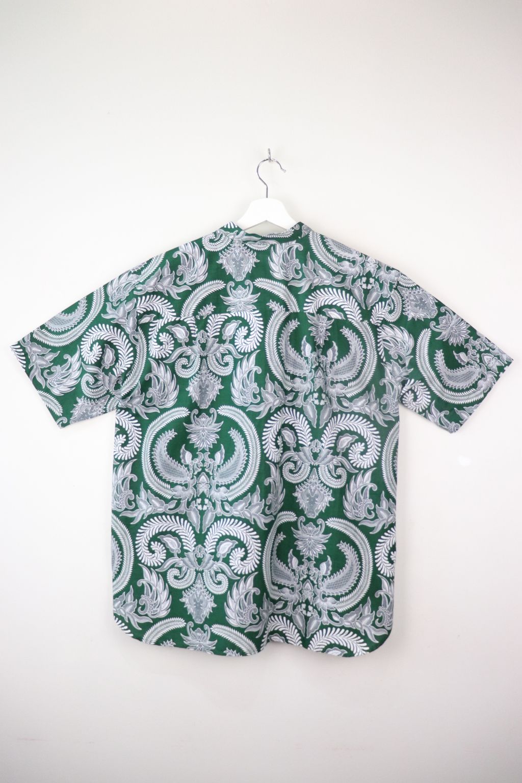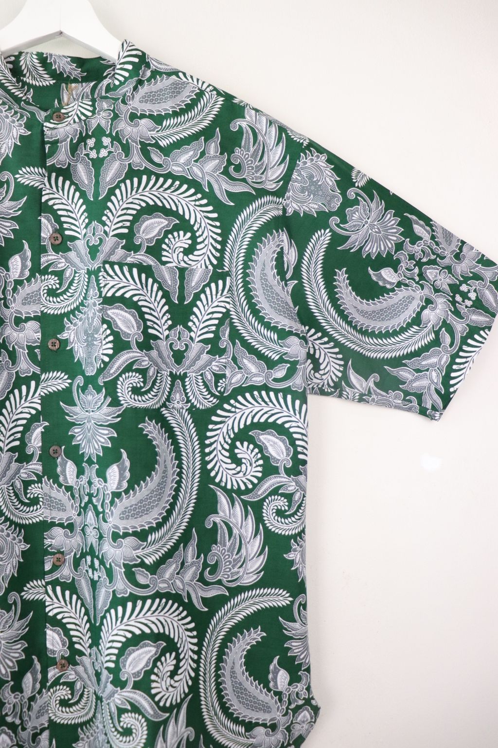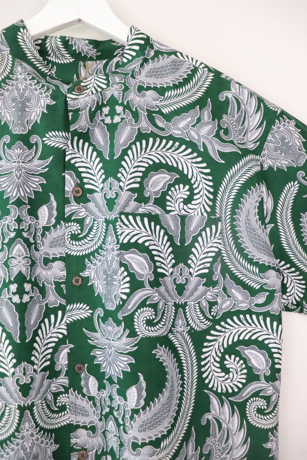 KANOEMEN Stand Collar Batik Shirt - Nori XL [ New Fit ]