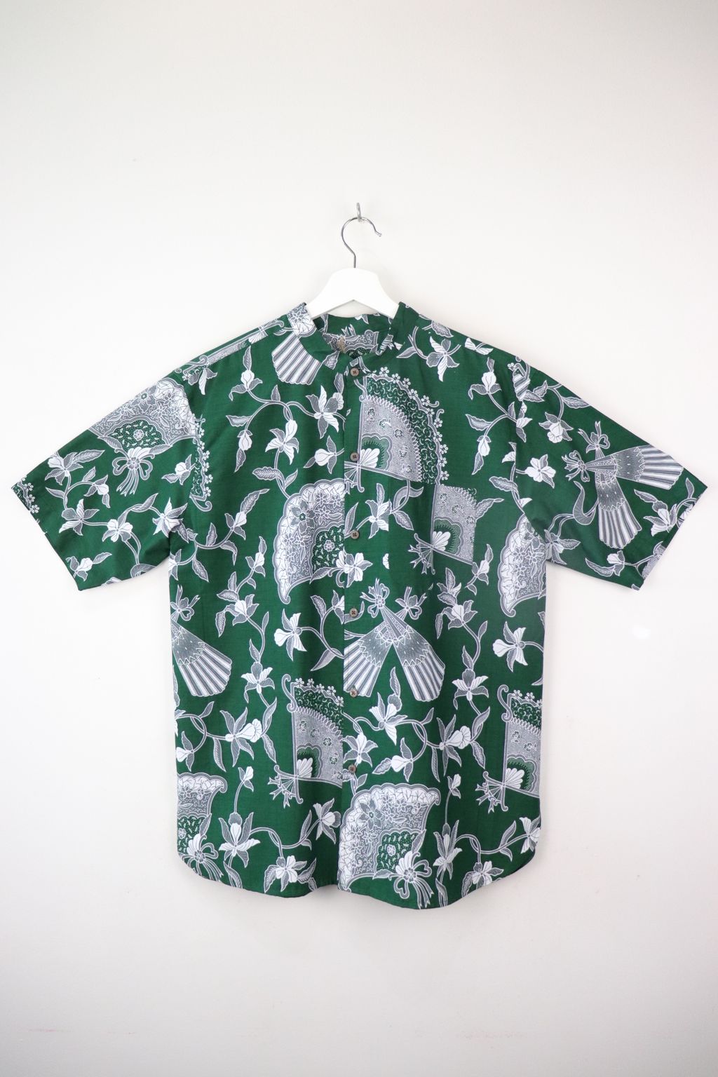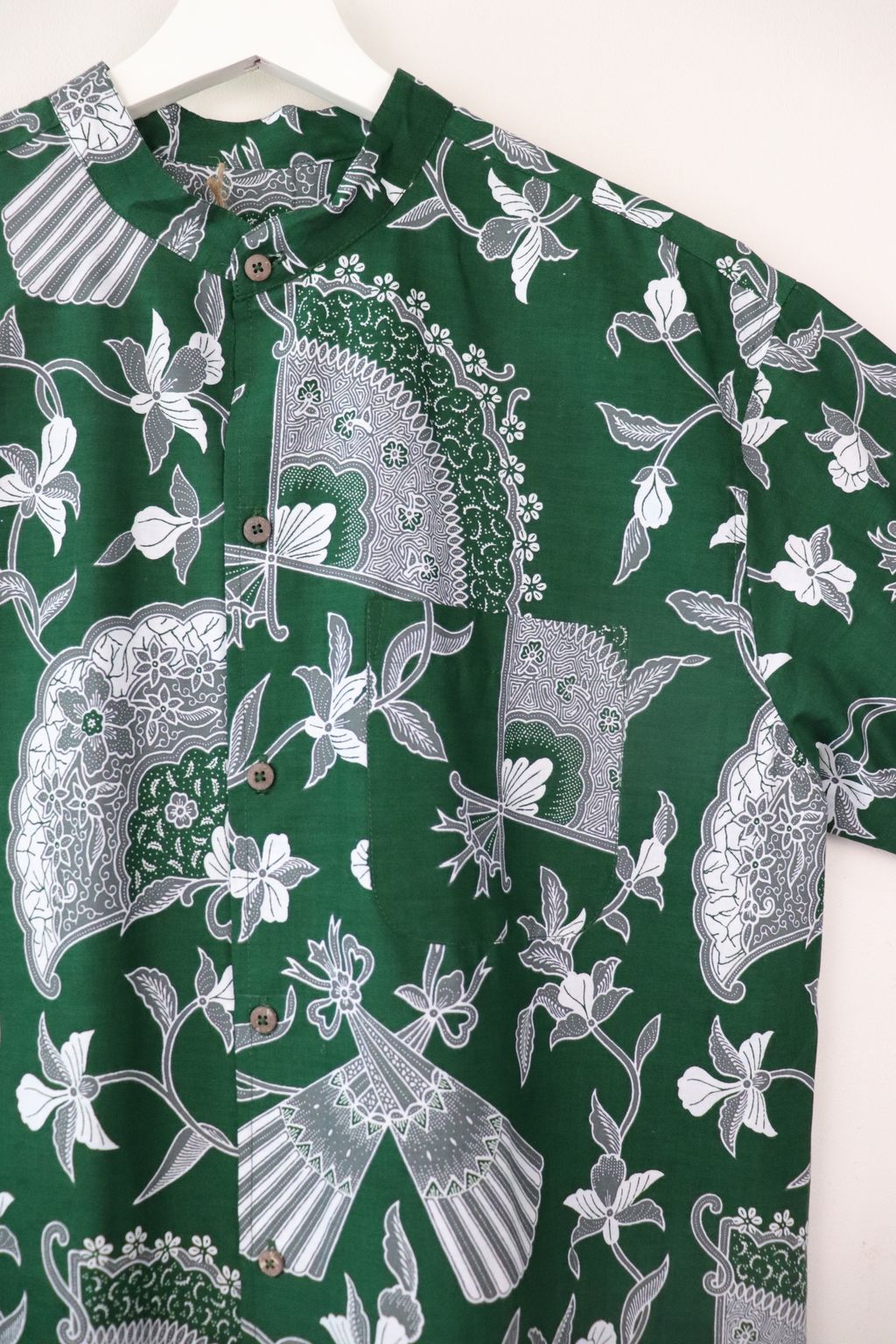 KANOEMEN Stand Collar Batik Shirt - Olivio XL [ New Fit ]