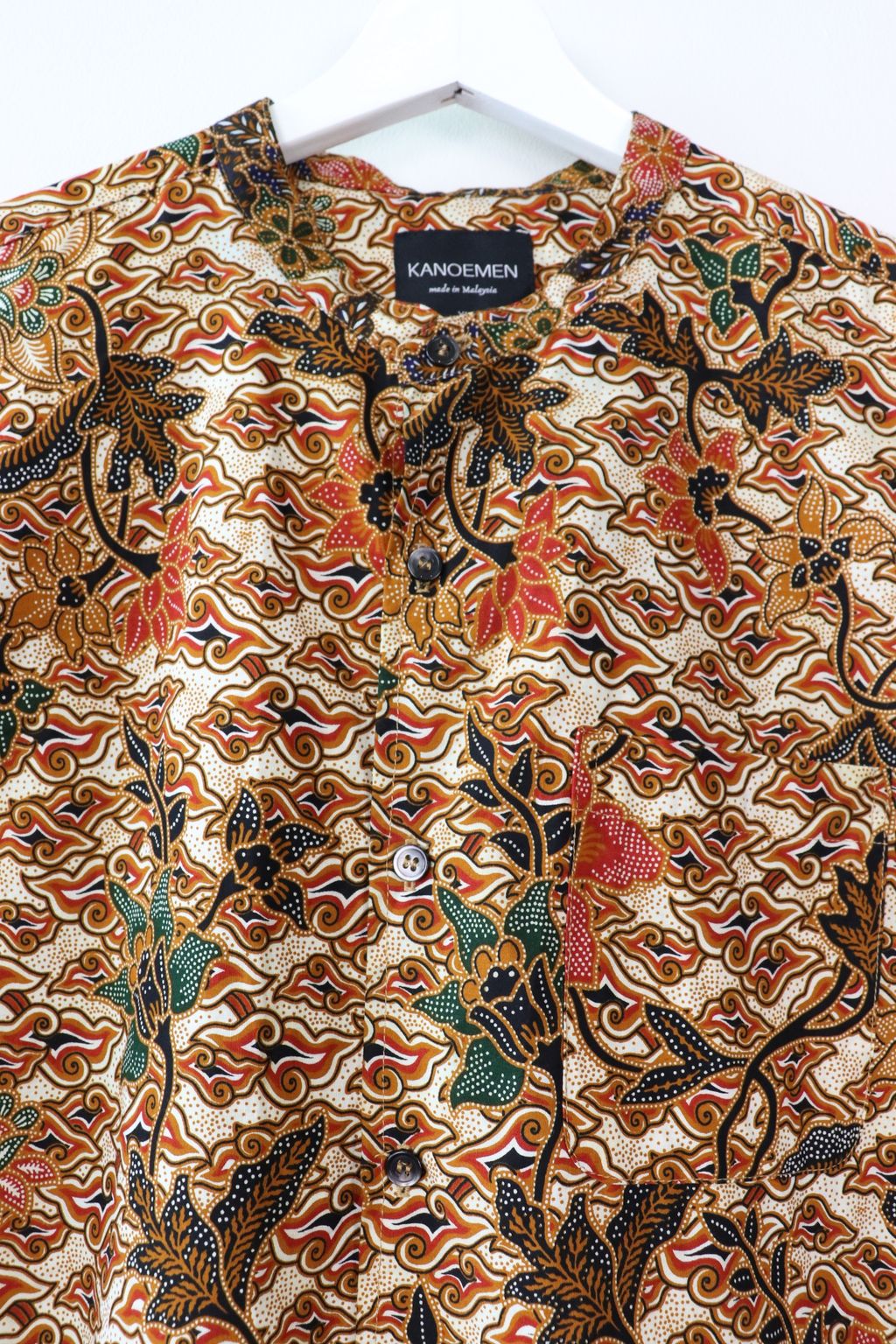 KANOEMEN Stand Collar Batik Shirt - Chandon Black (L)