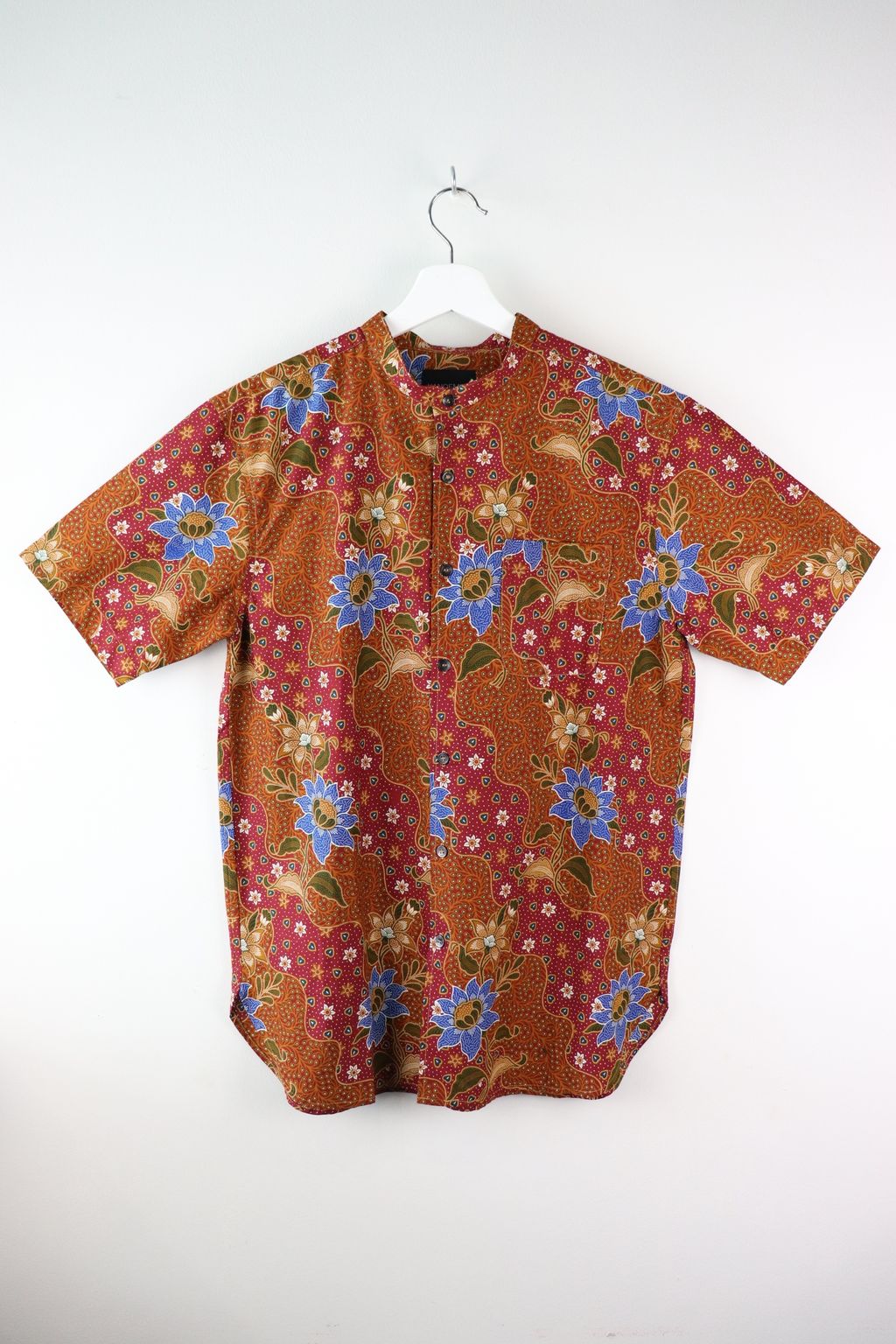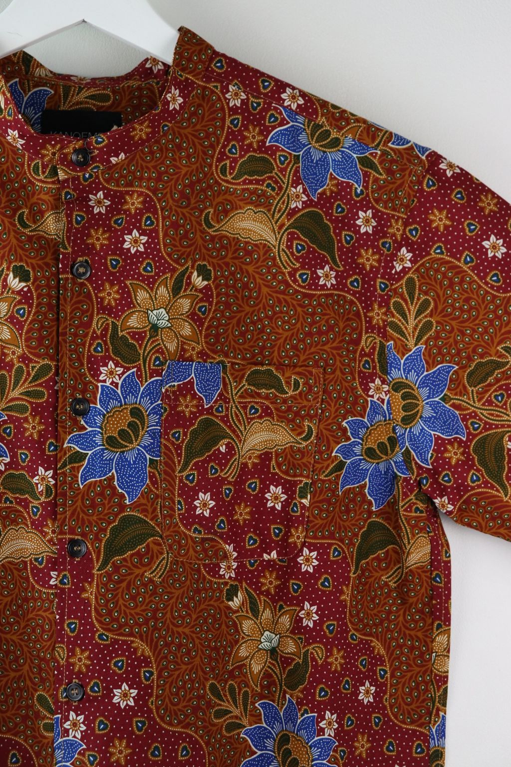 KANOEMEN Stand Collar Batik Shirt - Maroon (M)