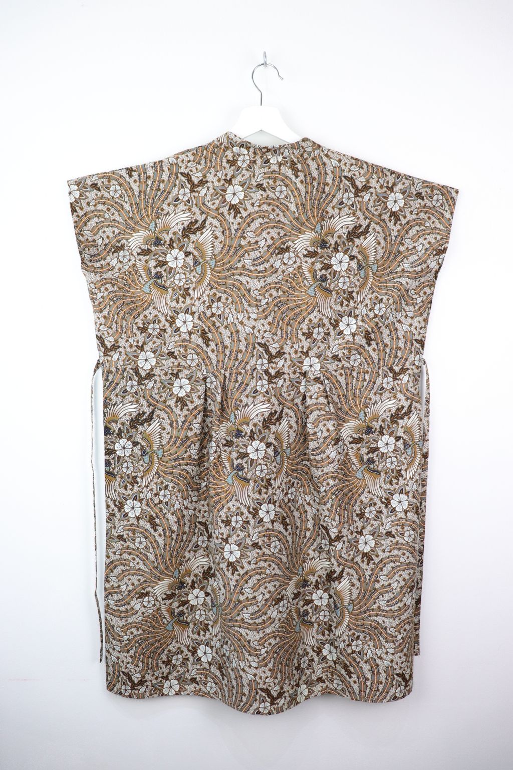 With a traditional mandarin collar that relaxes on the décolletage giving a very relax feel.