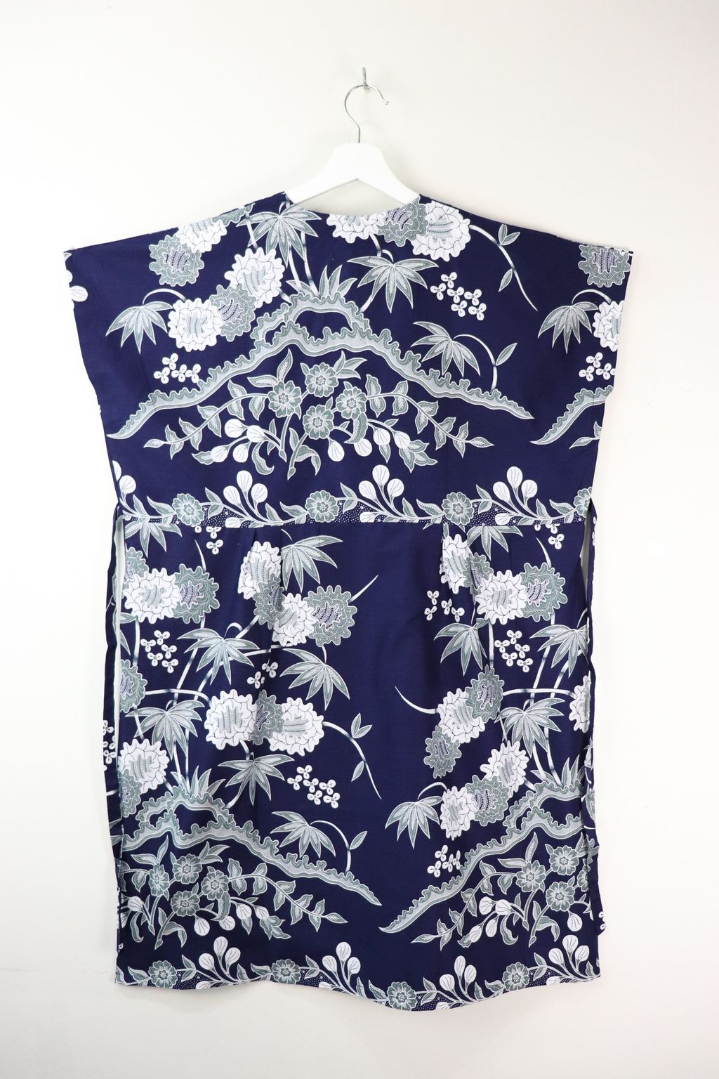 One size fits all with a waist tie that allows you to draw the dress in to fit you exactly the way you want.