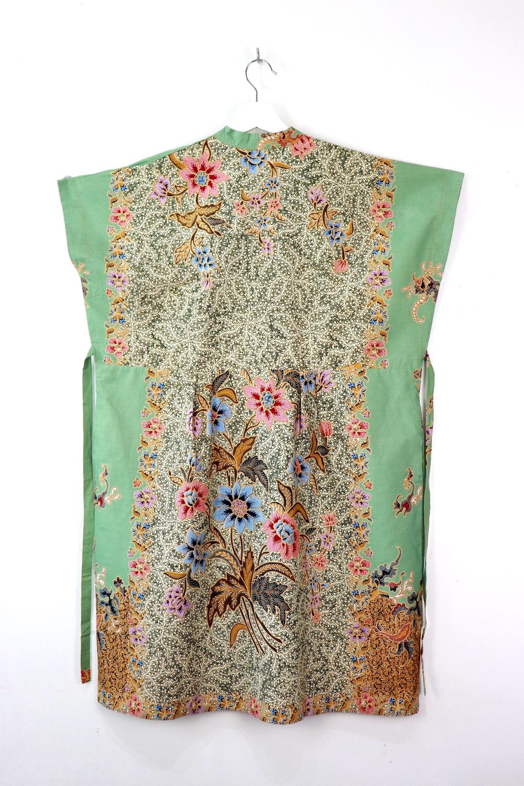 With a traditional mandarin collar that relaxes on the décolletage giving a very relax feel.