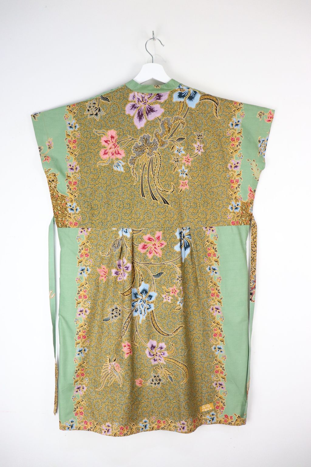 With a traditional mandarin collar that relaxes on the décolletage giving a very relax feel.