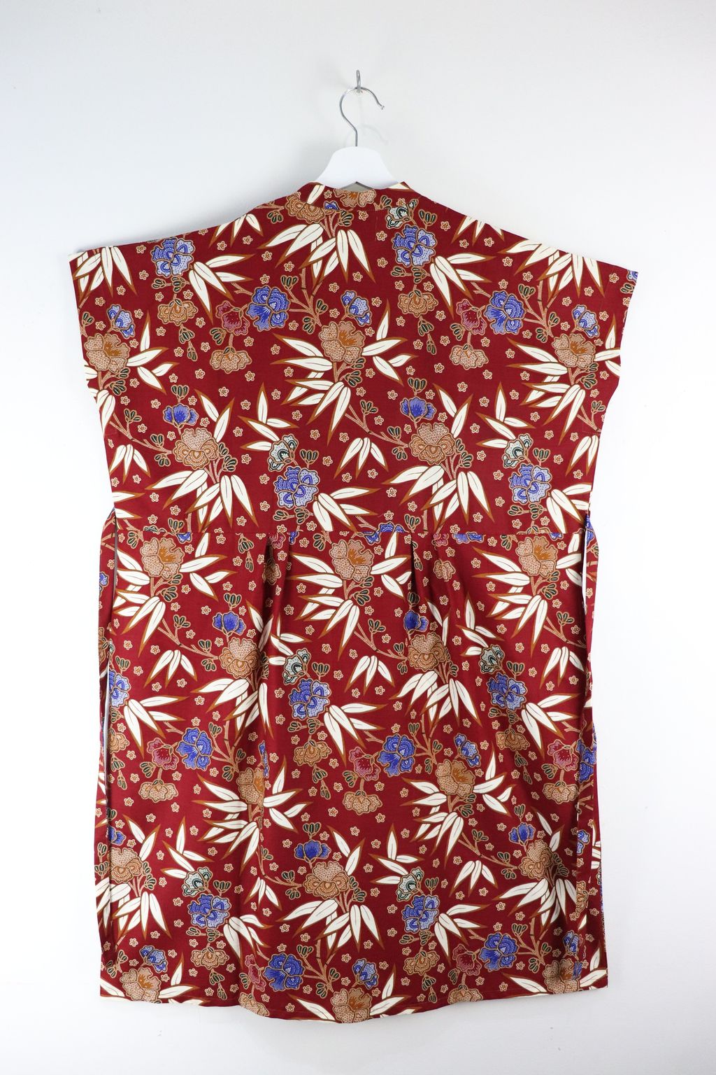 With a traditional mandarin collar that relaxes on the décolletage giving a very relax feel.