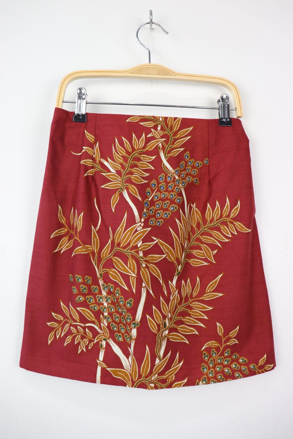 100% cotton of a kimono wrap top + a fitted mini skirt with side zip and elastic waist at back.