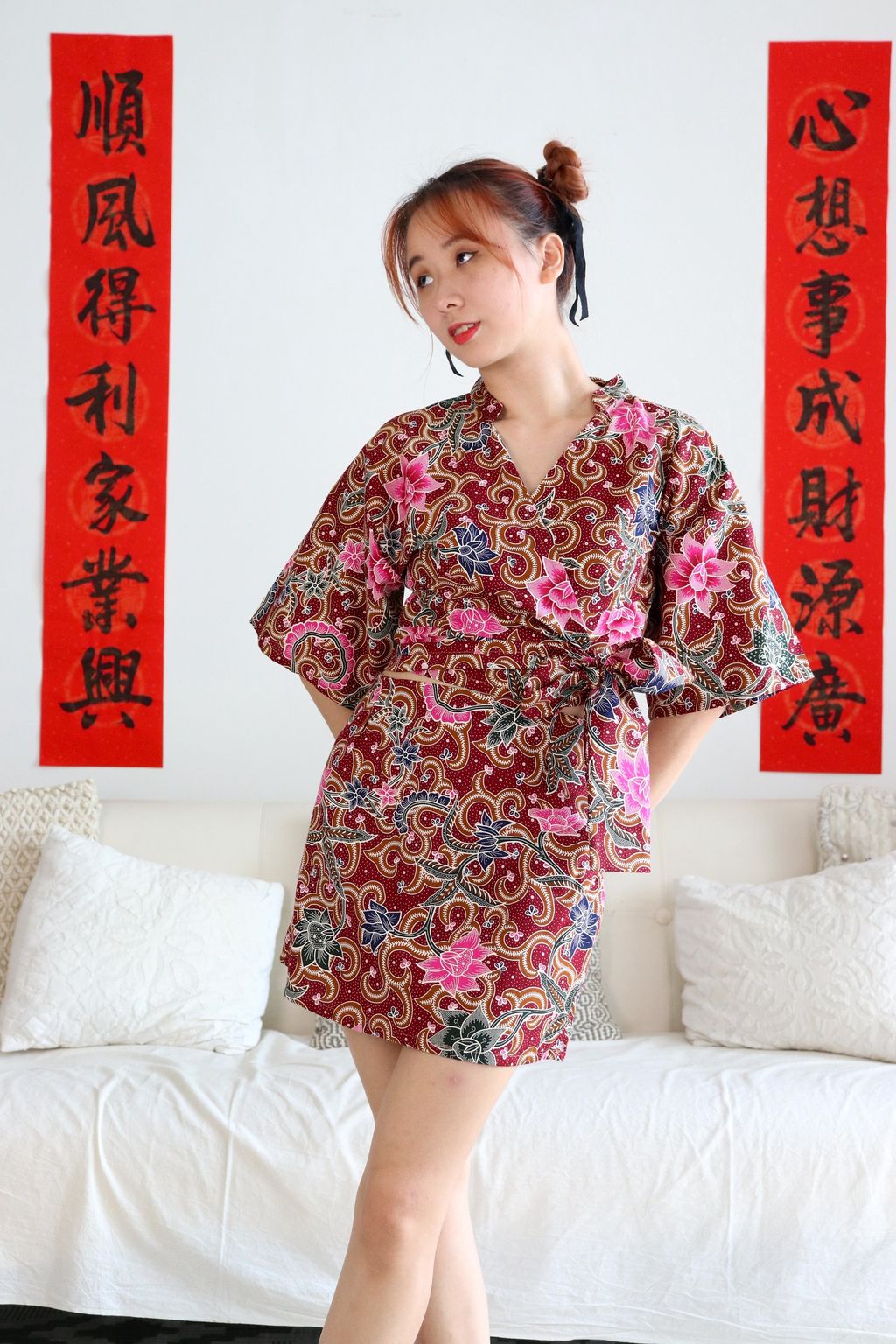 Kimono Wrap Matching Set - Bamboo Ruby (M)