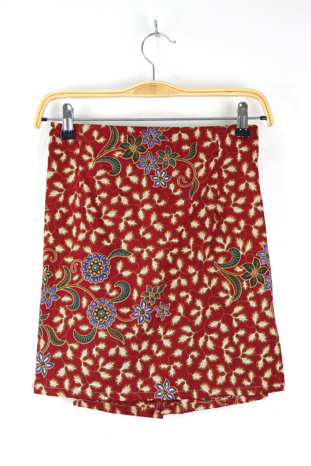 100% cotton of a kimono wrap top + a fitted mini skirt with side zip and elastic waist at back.