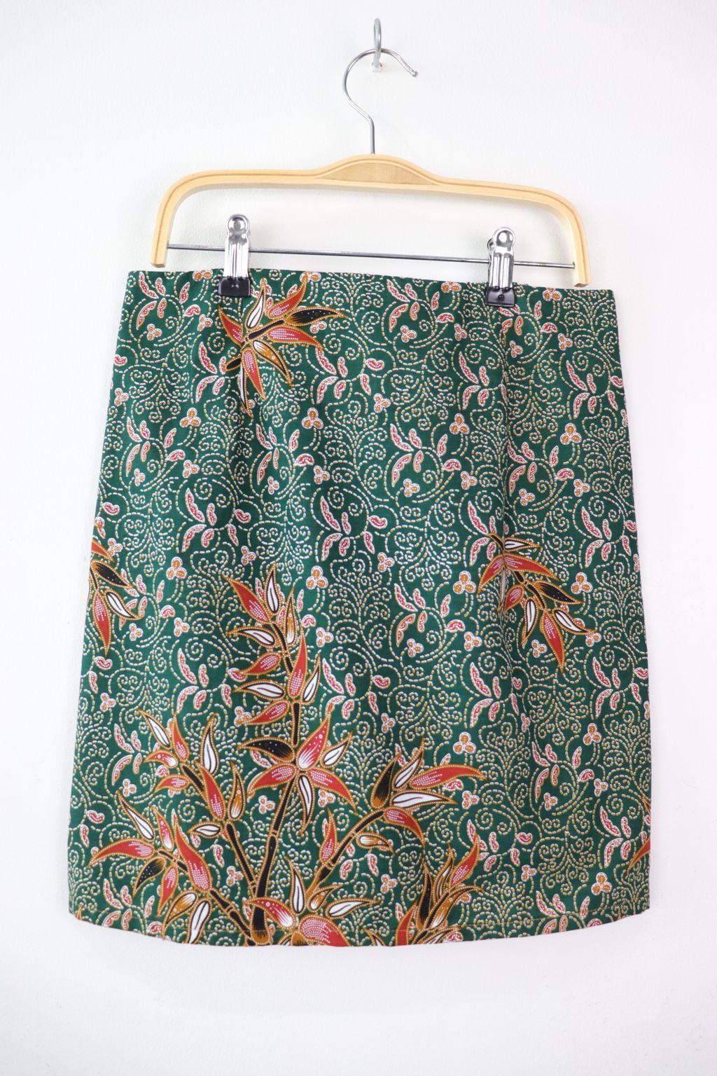 100% cotton of a kimono wrap top + a fitted mini skirt with side zip and elastic waist at back.