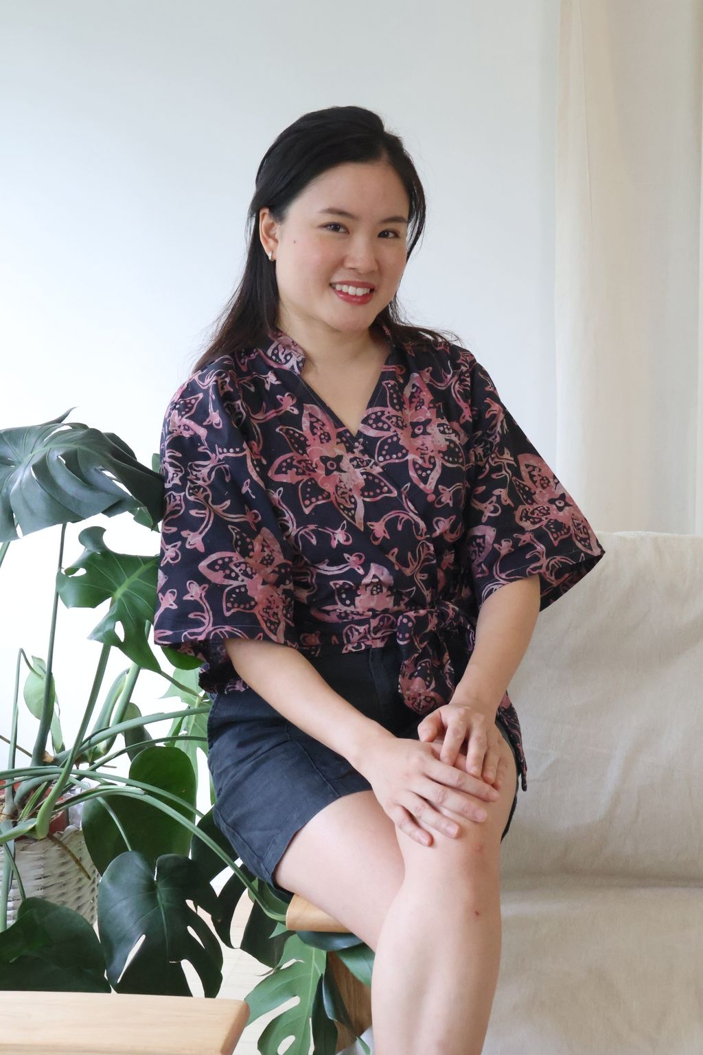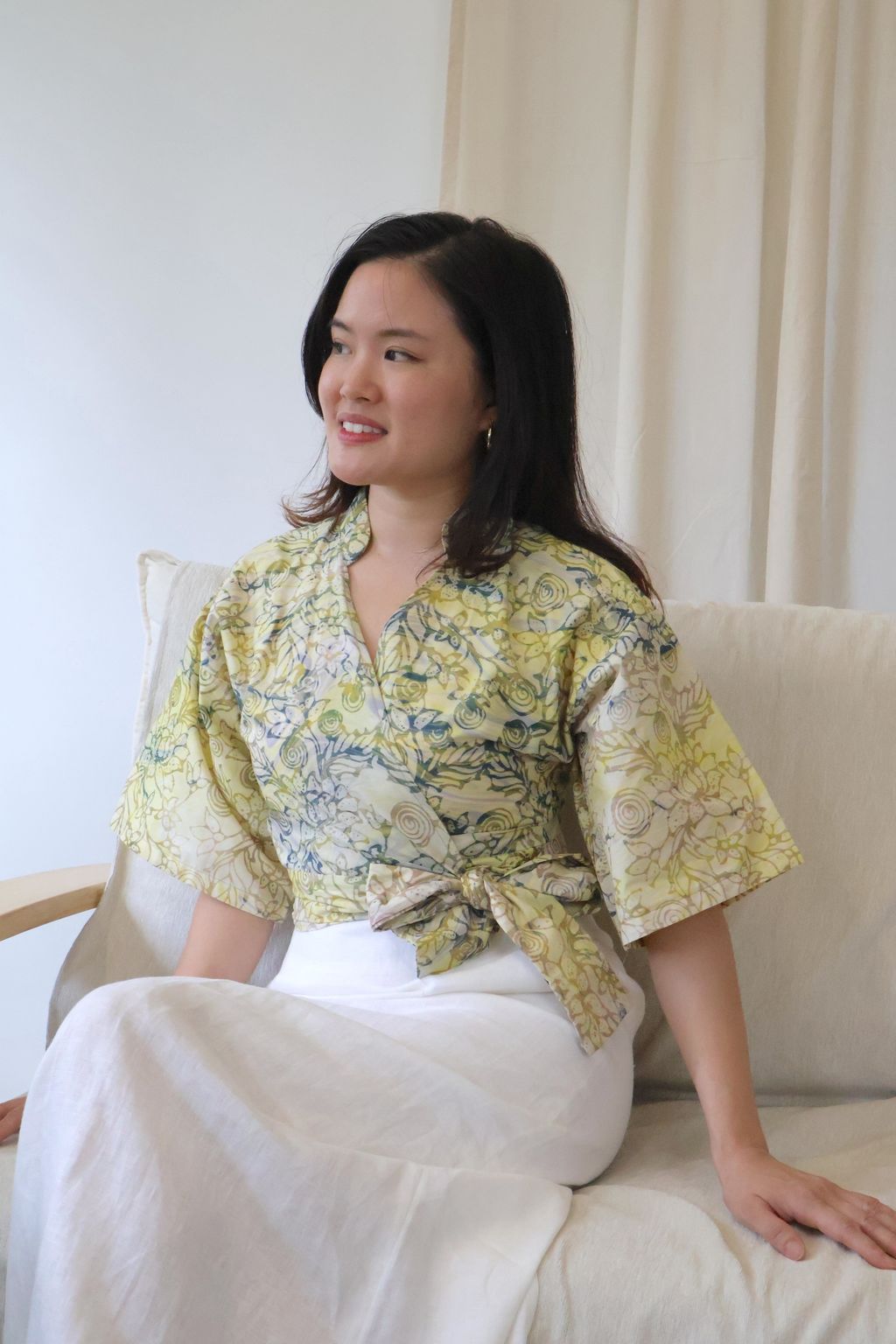 This Kimono Wrap Top is flattering to the feminine figure.