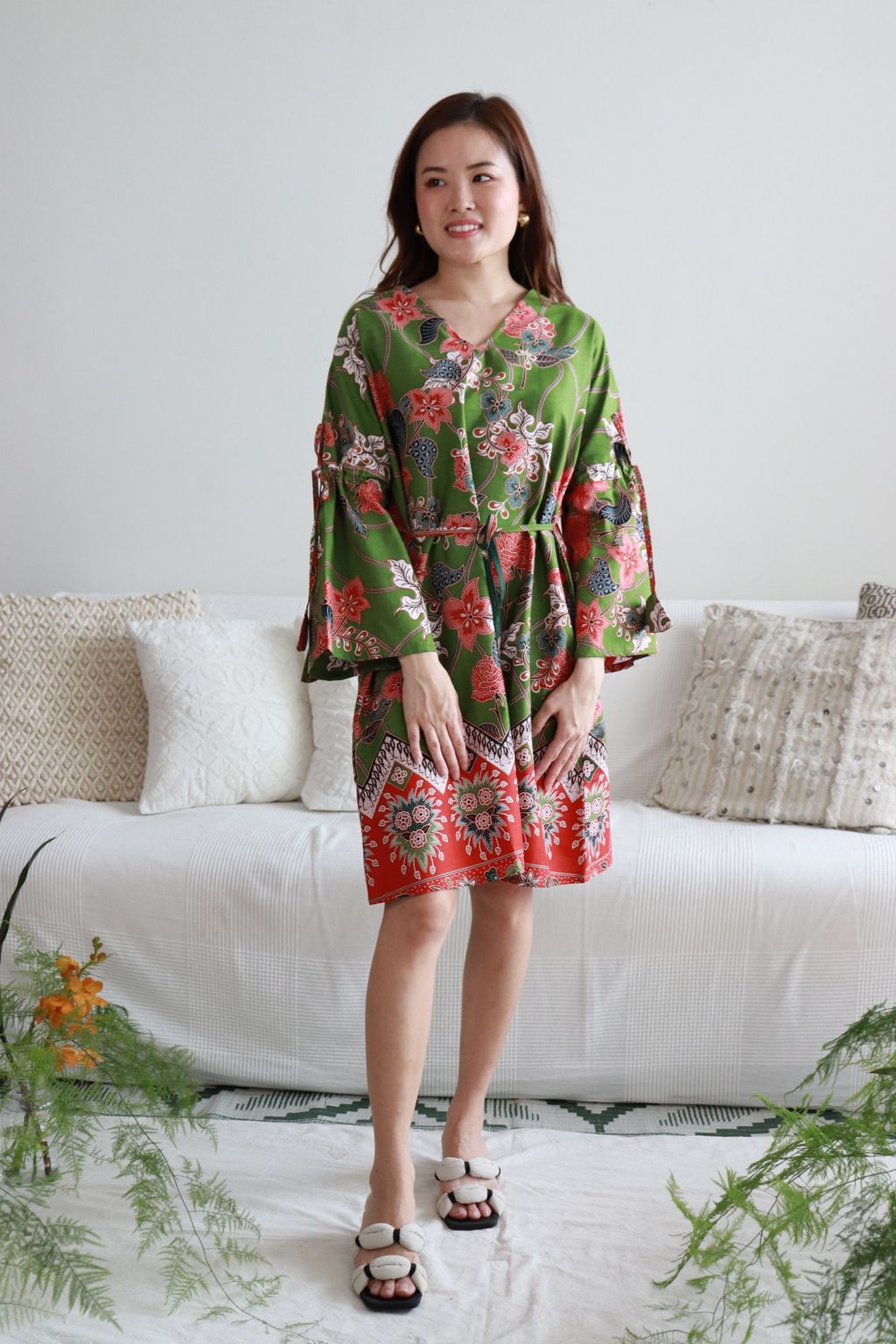 The waist tie can be worn loose or tied around the waist to give it a nice fit.