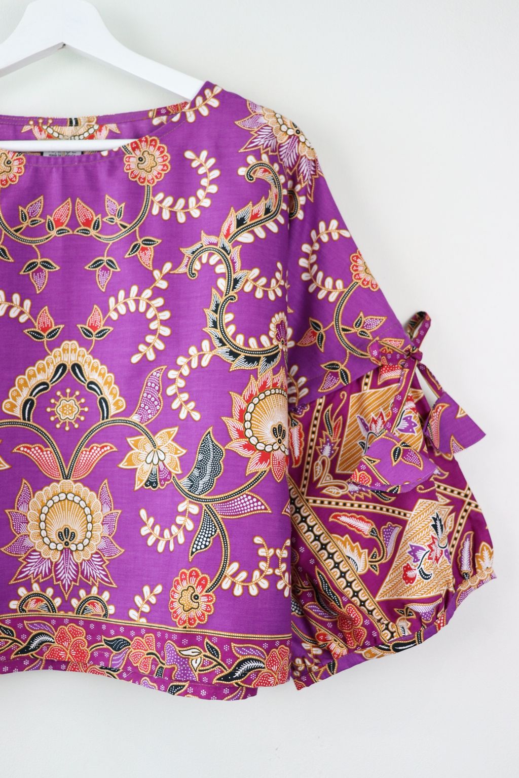 Our Klassik Batik is a way of embracing the old while giving a special twist of the new in its design. Sophistication is in simplicity. The sleeve detail with our signature tassels gives this top character and makes it fun to wear! While we kept it modest with the jambu sleeves. The great thing about this Klassik Batik Top is that you can wear it to almost any occasion and it will never run out of style! Whether it be a casual day out, to work, or even a nice evening out as you pair it with some gold hoops!