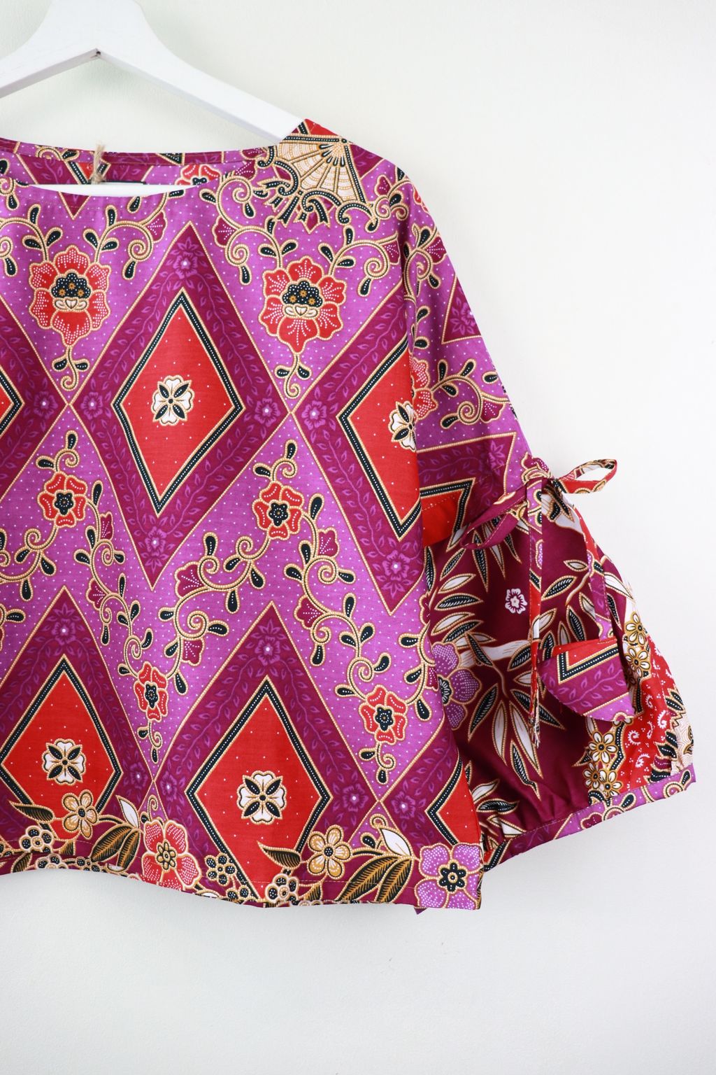 Our Klassik Batik is a way of embracing the old while giving a special twist of the new in its design. Sophistication is in simplicity. The sleeve detail with our signature tassels gives this top character and makes it fun to wear! While we kept it modest with the jambu sleeves. The great thing about this Klassik Batik Top is that you can wear it to almost any occasion and it will never run out of style! Whether it be a casual day out, to work, or even a nice evening out as you pair it with some gold hoops!