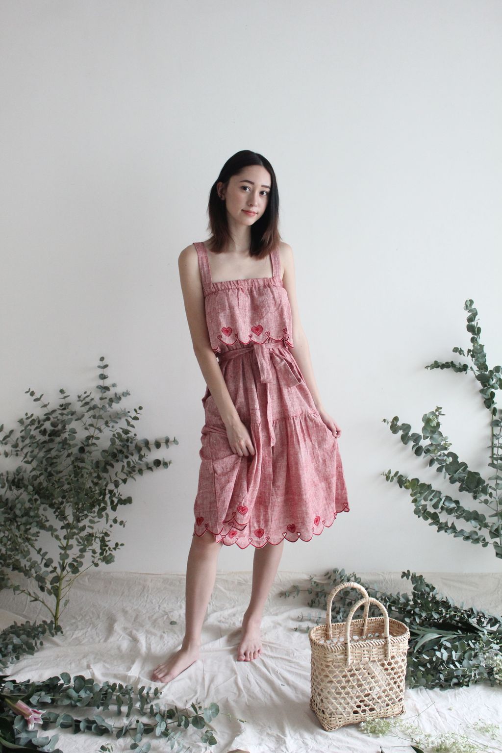 This beautiful dress is made of 100% soft cotton hand spun, then hand woven and finally naturally dyed cotton by skilled artisans in India. The embroidery is hand machine sulam by skilled artisans locally in Malaysia.