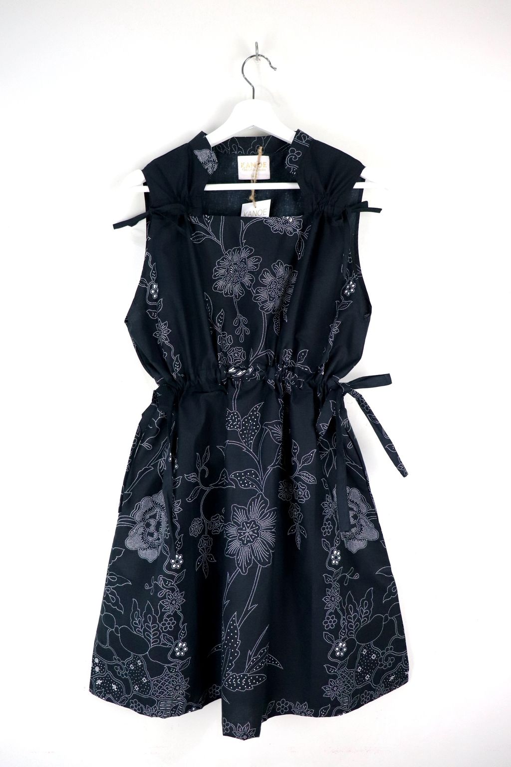 These dresses have little ribbons to tie, near the neckline and at the side of the waist