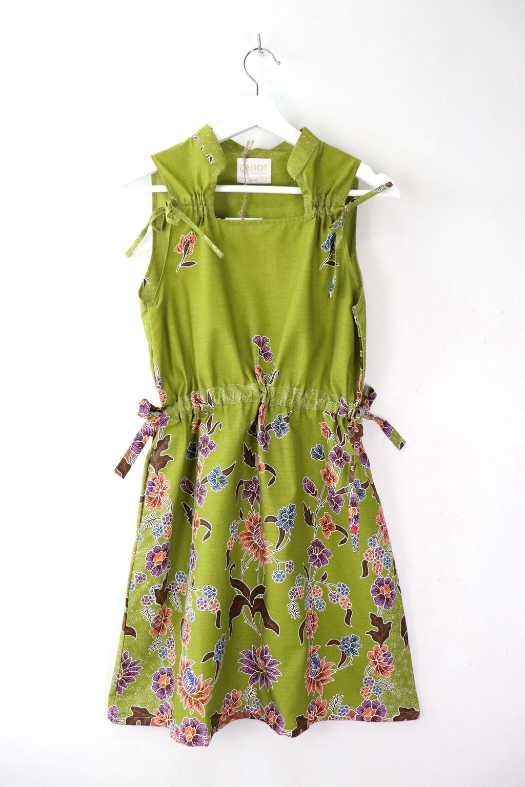 These dresses have little ribbons to tie, near the neckline and at the side of the waist
