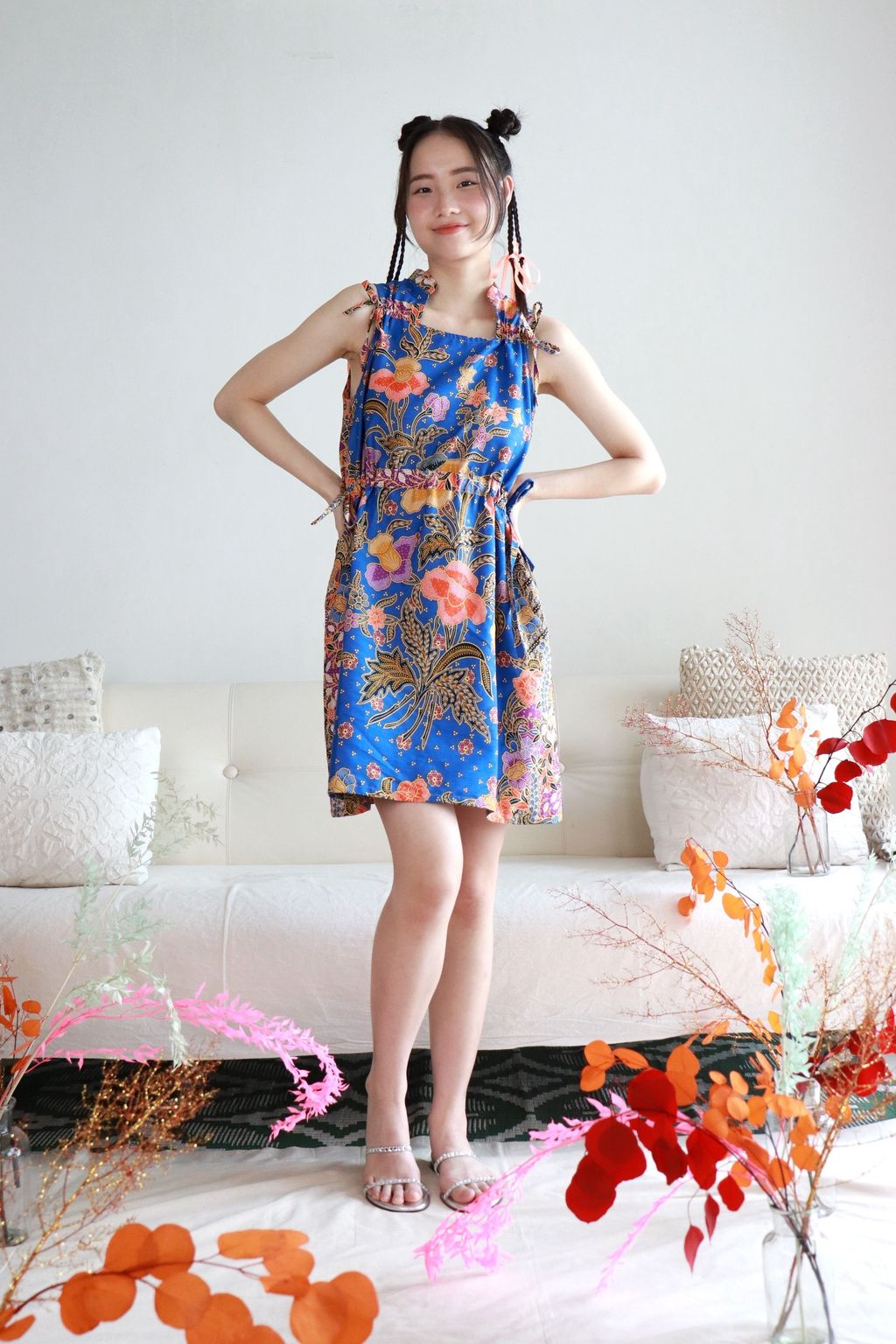 These dresses have little ribbons to tie, near the neckline and at the side of the waist