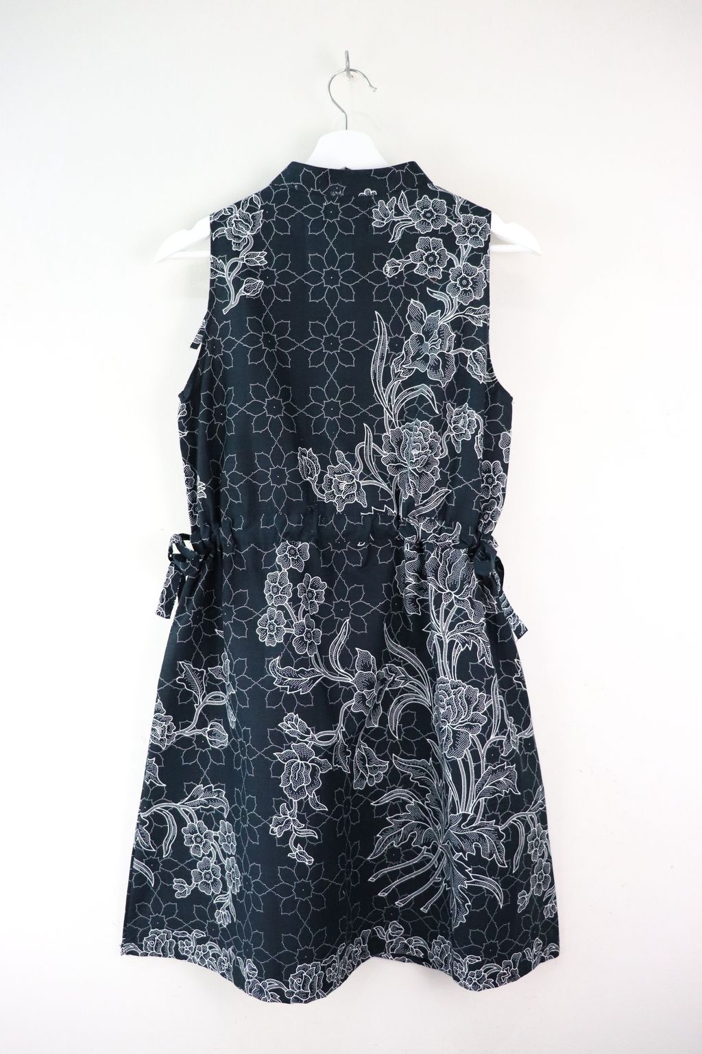 These dresses have little ribbons to tie, near the neckline and at the side of the waist