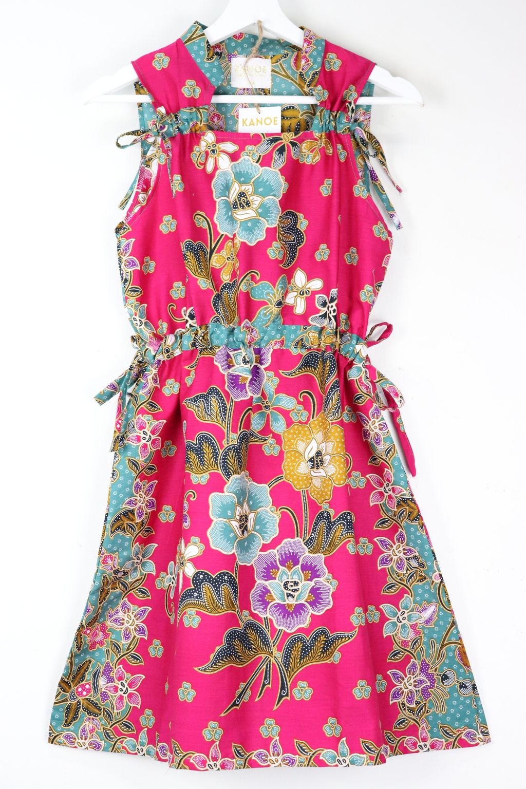 These dresses have little ribbons to tie, near the neckline and at the side of the waist