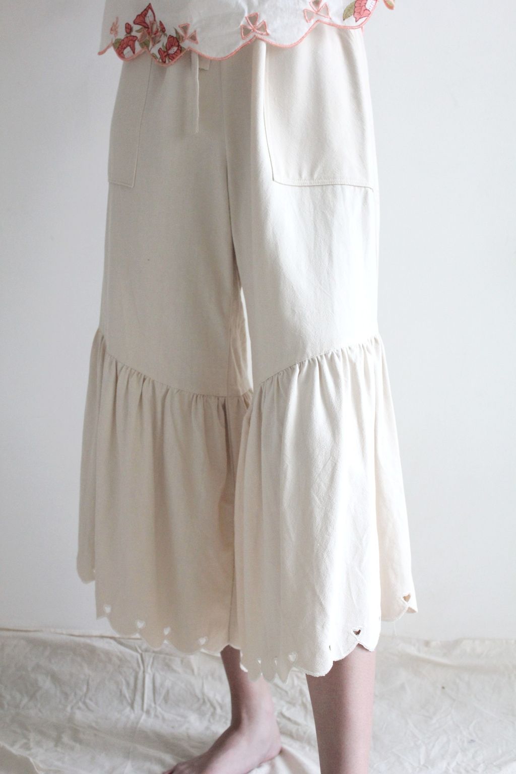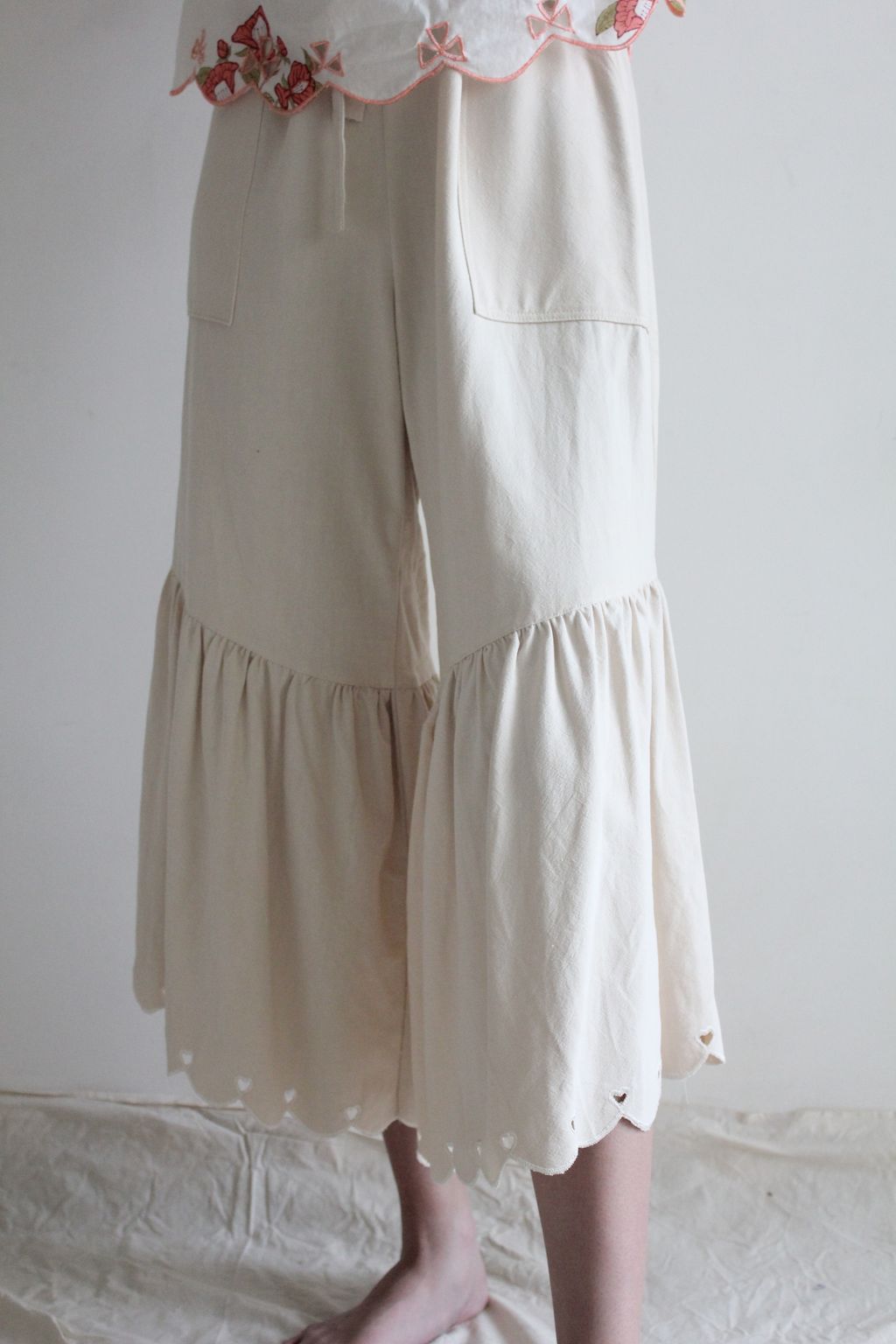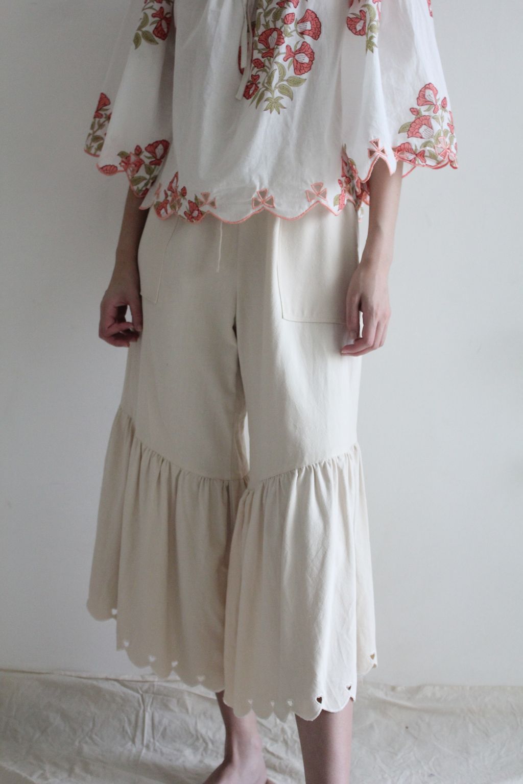 Frou Pants delight! 100% heavier cotton with pockets and drawstring for fit. Sulam embroidered by skilled Artisans.