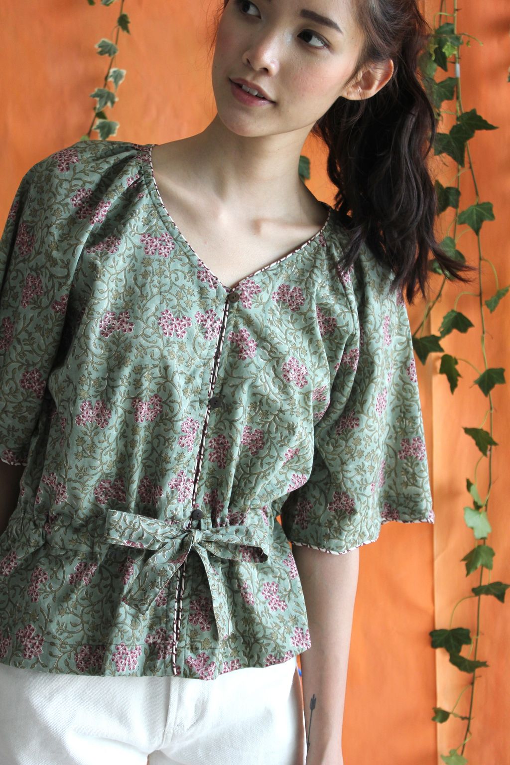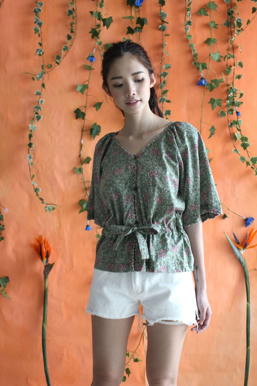 Our maharaja top is feminine with its detailed scallop piping at the edge of the sleeves with adjustable ribbon at the waist.