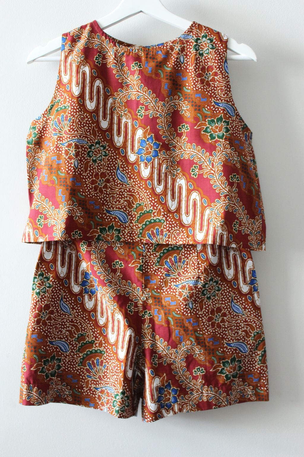 I've somehow always pictured a girl in a matching batik set, wearing a classic cropped top and matching tailored shorts doing her daily to do run. Super cute and easy!  Wear it at home, wear it to the market, wear it out as you roam around the city and country side!