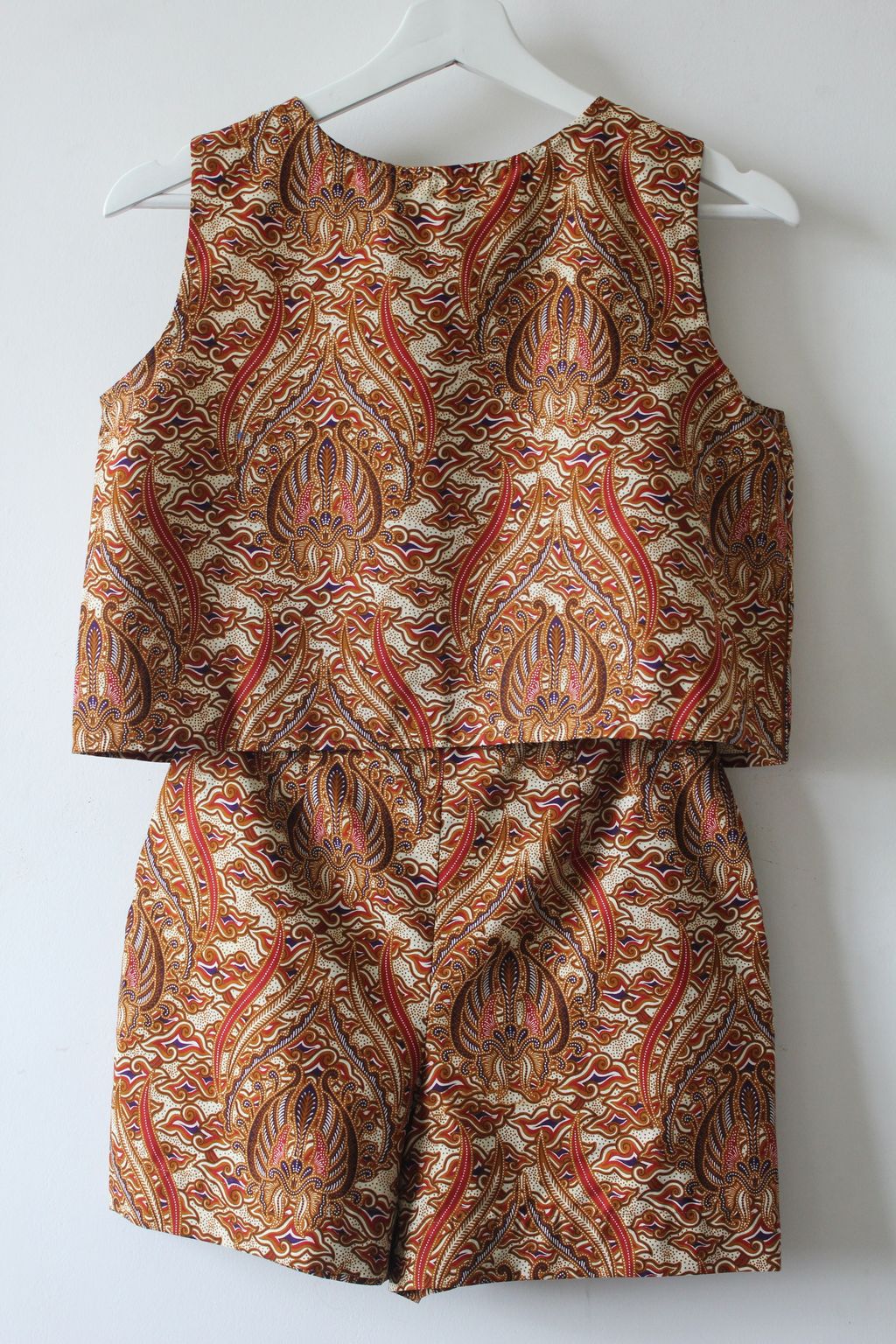 I've somehow always pictured a girl in a matching batik set, wearing a classic cropped top and matching tailored shorts doing her daily to do run. Super cute and easy!  Wear it at home, wear it to the market, wear it out as you roam around the city and country side!