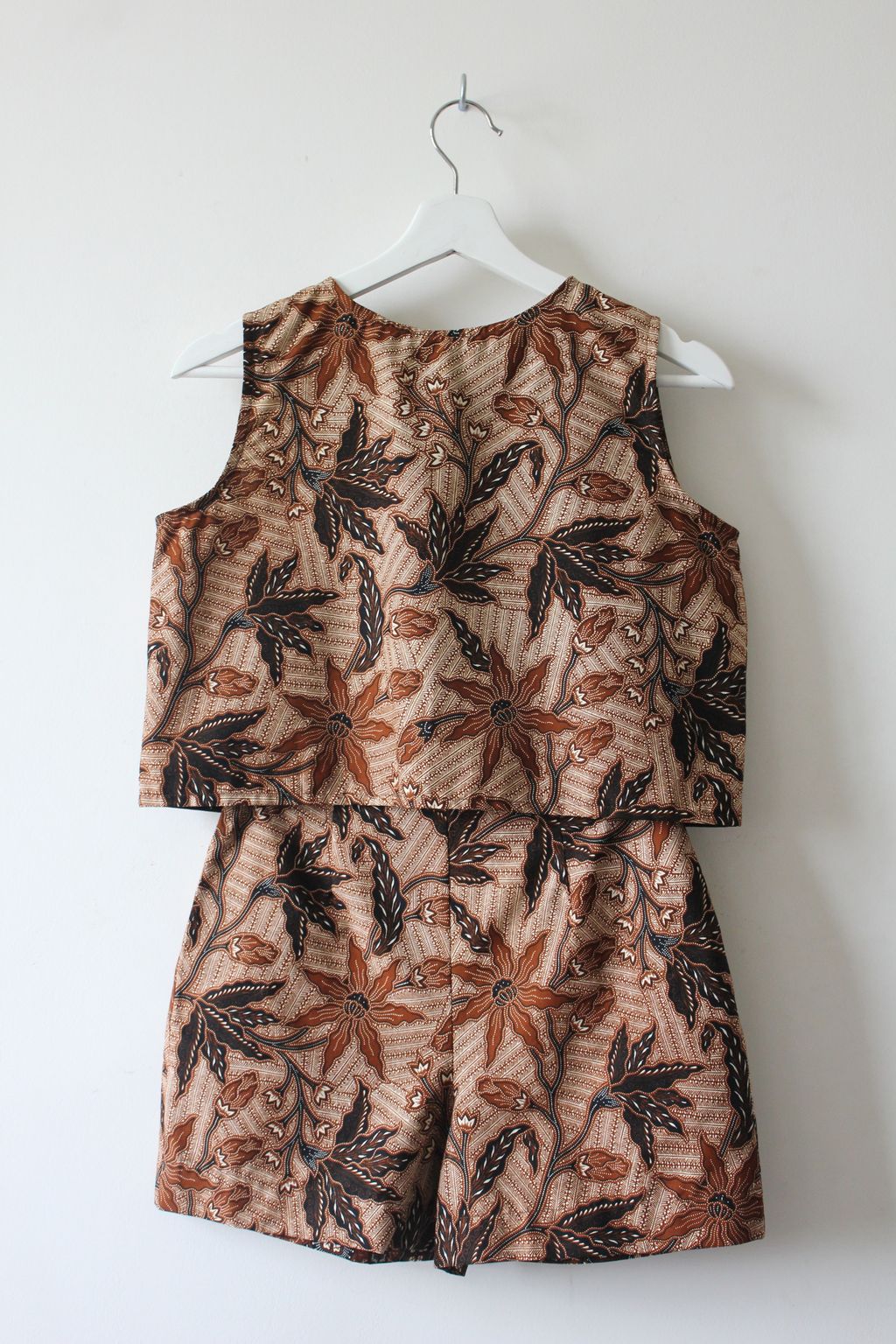 I've somehow always pictured a girl in a matching batik set, wearing a classic cropped top and matching tailored shorts doing her daily to do run. Super cute and easy!  Wear it at home, wear it to the market, wear it out as you roam around the city and country side!