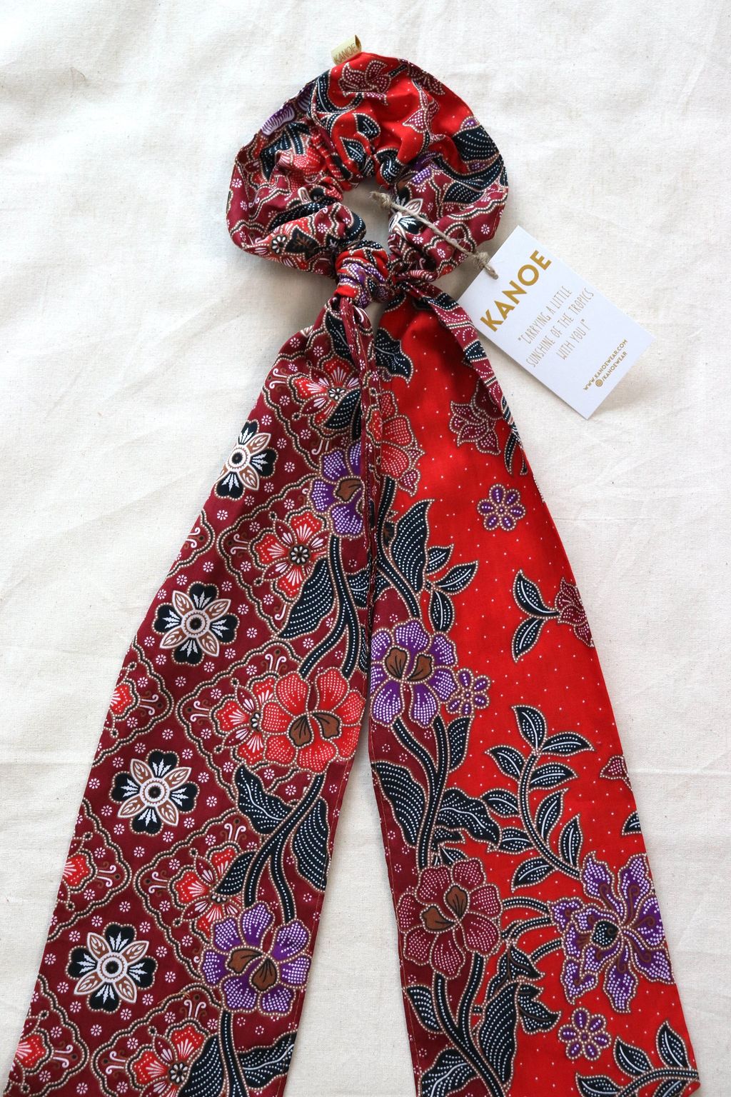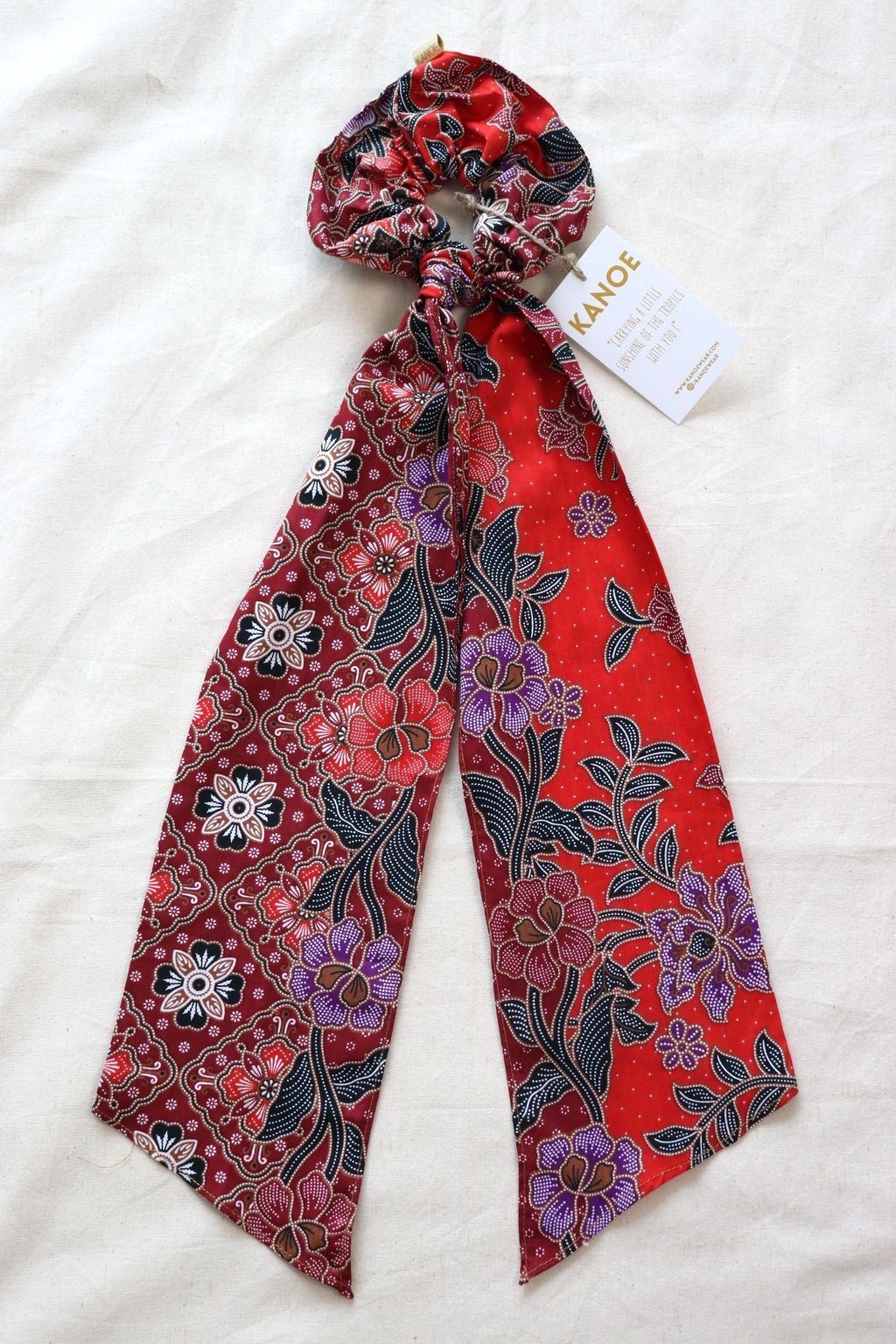 Maxi Batik Scrunchie w/ Ribbon - Ruby
