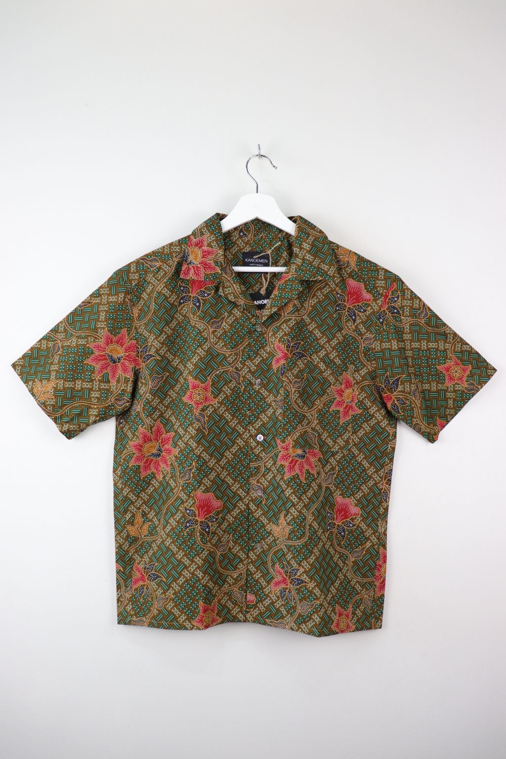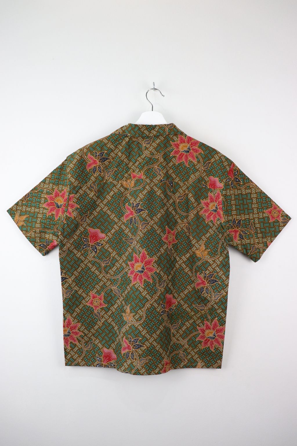 *Image of shirt on model is just for illustrative purposes. Keith standing at 174cm is wearing batik weave shirt in size S, grey handmade batik shirt in M and the navy blue shirt with red floral in size L.