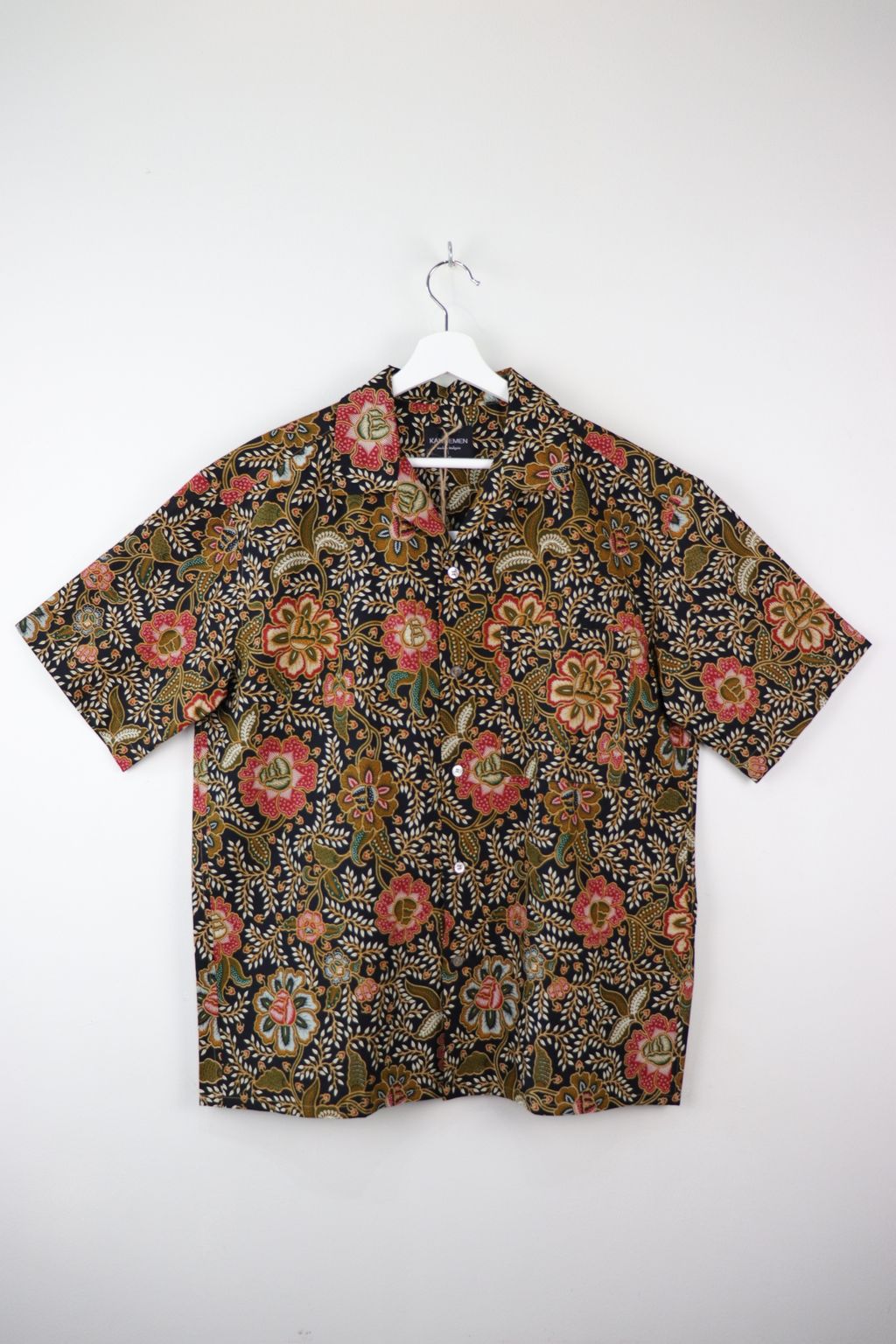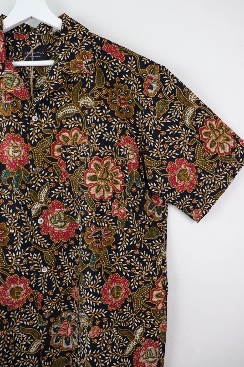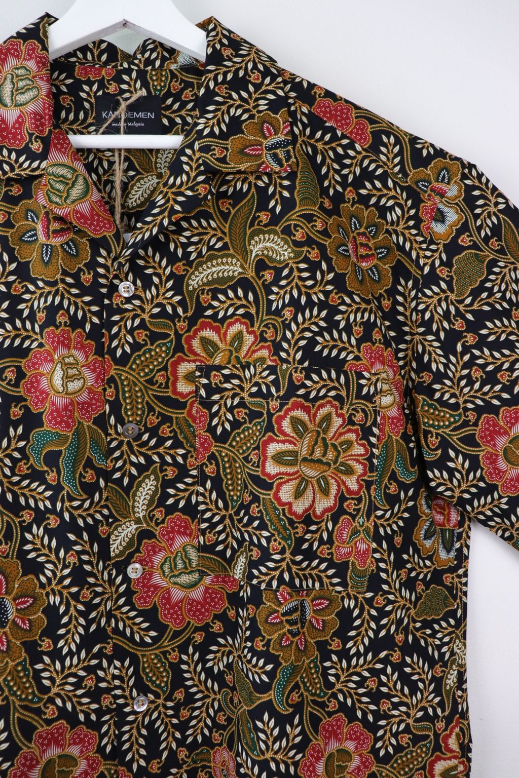 *Image of shirt on model is just for illustrative purposes. Keith standing at 174cm is wearing batik weave shirt in size S, grey handmade batik shirt in M and the navy blue shirt with red floral in size L.