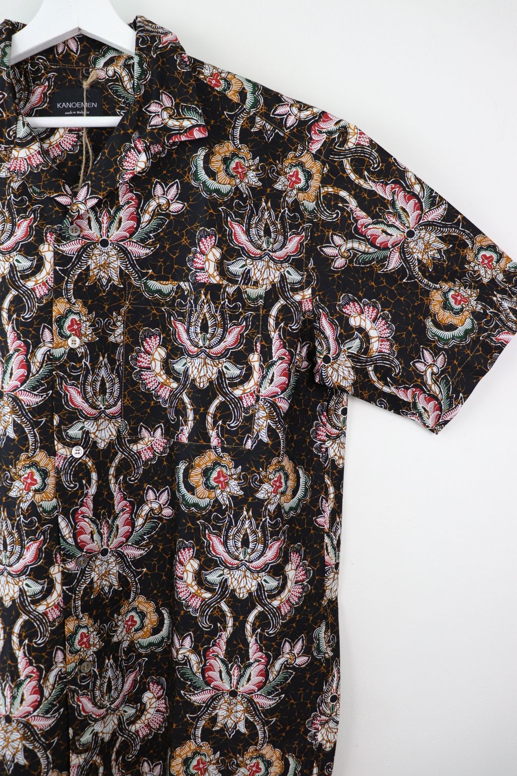 *Image of shirt on model is just for illustrative purposes. Keith standing at 174cm is wearing batik weave shirt in size S, grey handmade batik shirt in M and the navy blue shirt with red floral in size L.