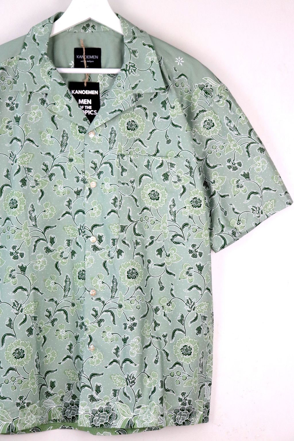 KANOEMEN Open Collar Batik Shirt - Ice Mint