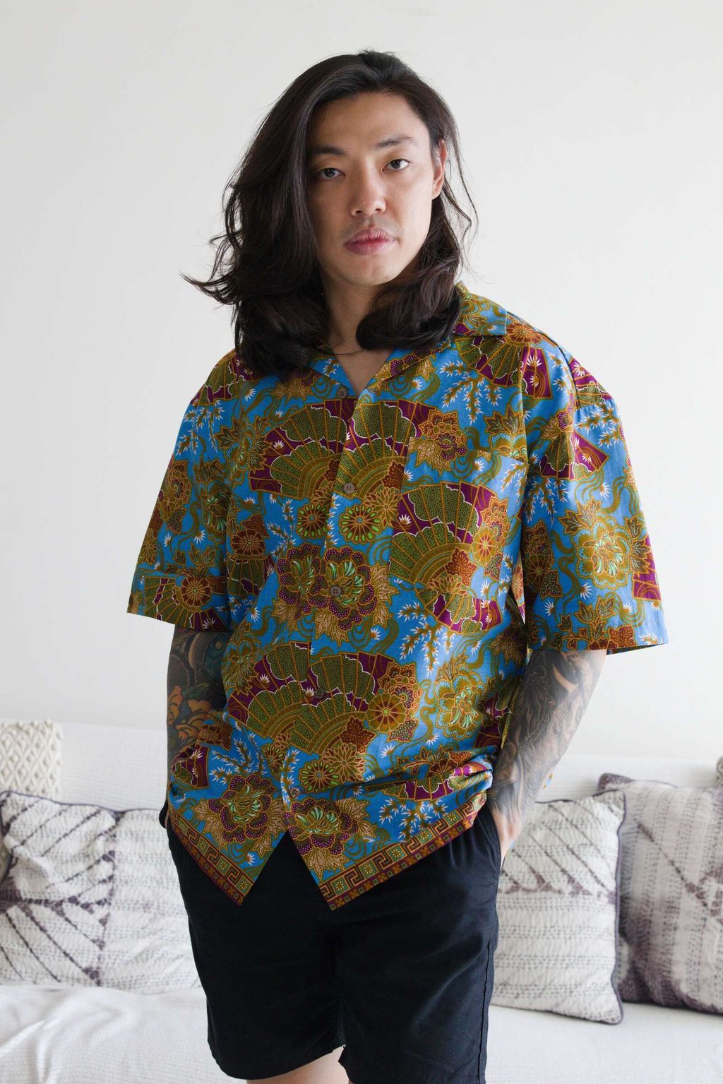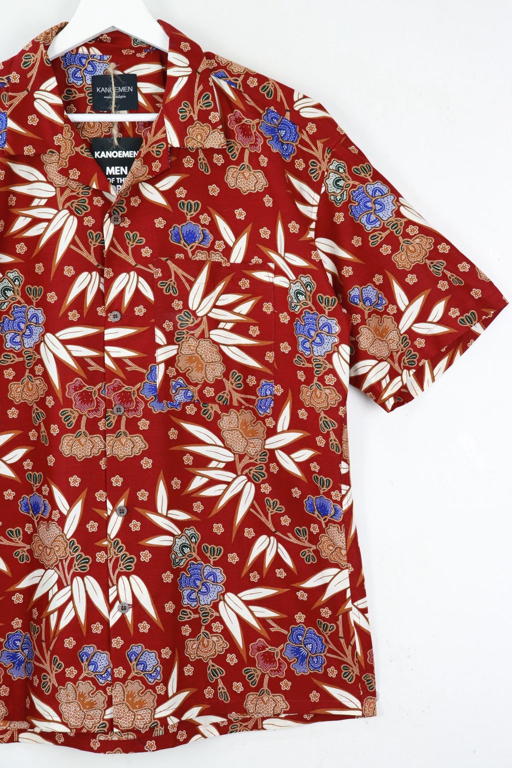 KANOEMEN Open Collar Batik Shirt - Longevity Leaf [ L ]