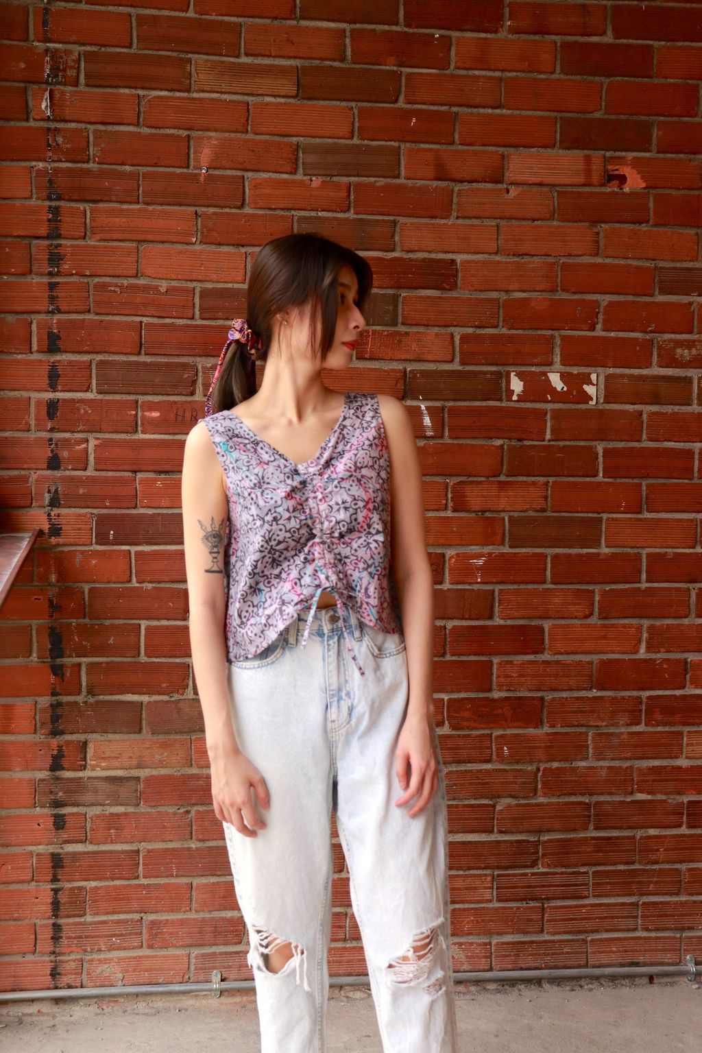 Malaysian Artisanal batik created into these everyday breezy sleeveless front ruched batik top with an elegant curve feature.
