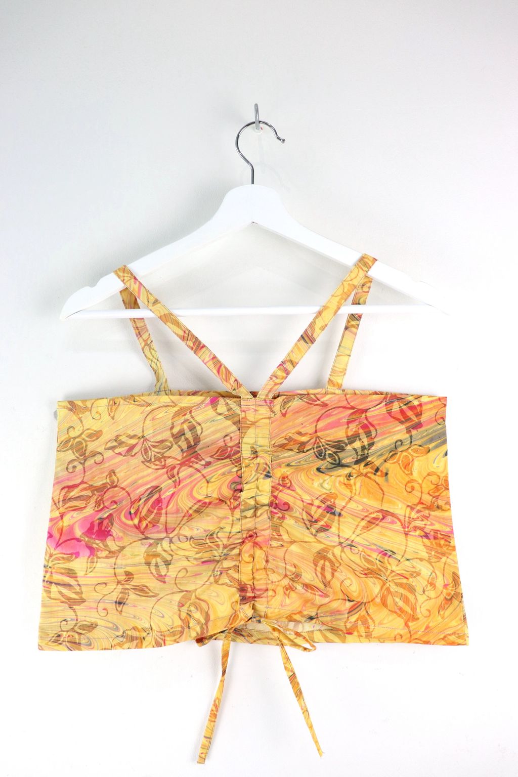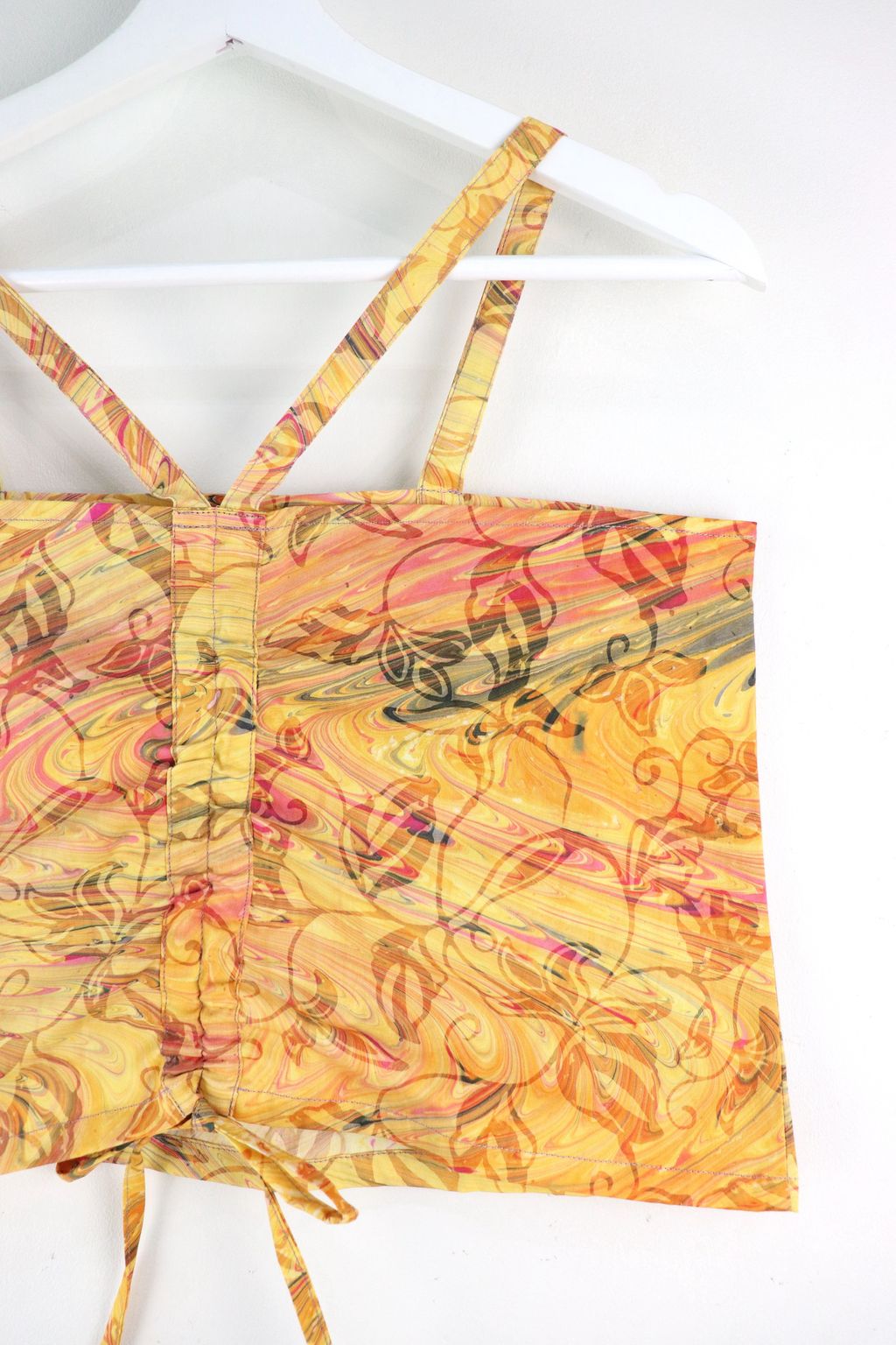 This boxy halter cropped top features a functional drawstring that ruches the top into a pretty butterfly-esque shape! It also comes in mulitple different shades of bright and fun colours too!