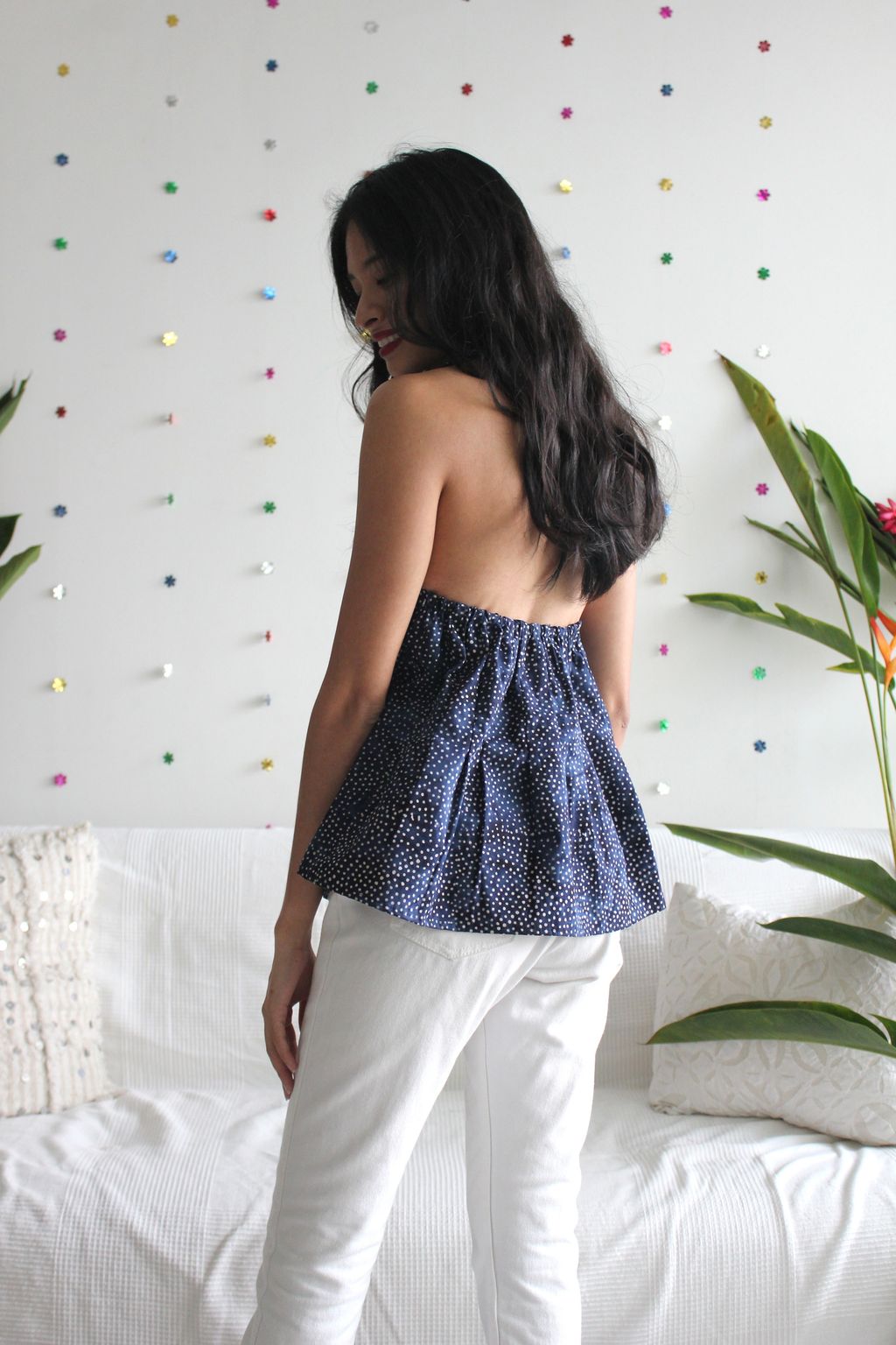 For the sun kissed wanderer. Classy with a dash of flirt. This starry starry night top is made of 100% hand dyed hand printed cotton. Elegant in silhouette.