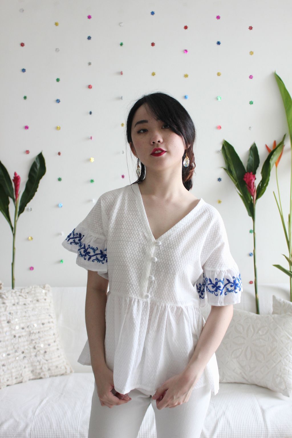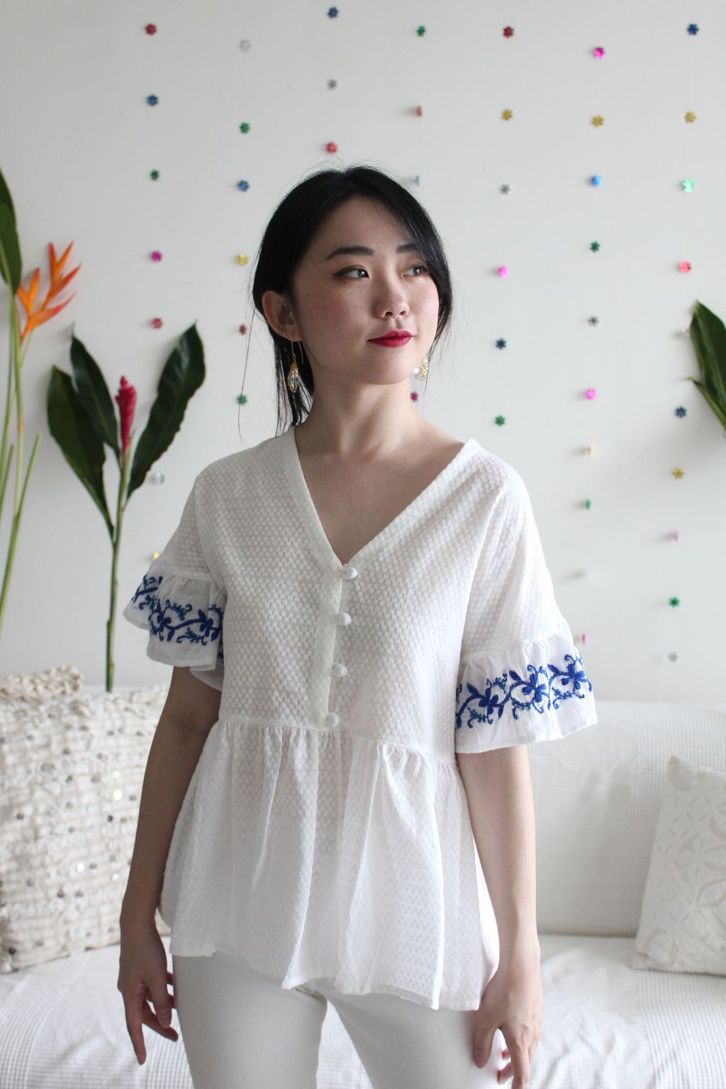 Delicate tops made from soft light textured cotton voile with hand embroidery details on each sleeves. We called them fairy tops as they are pretty magical!