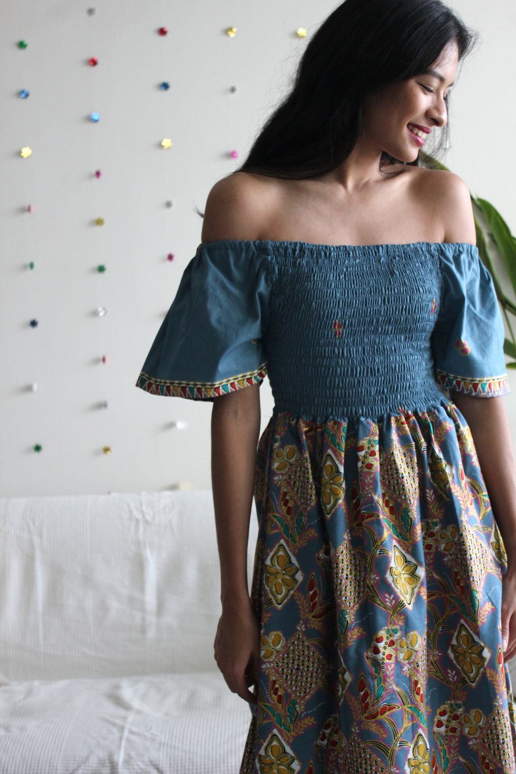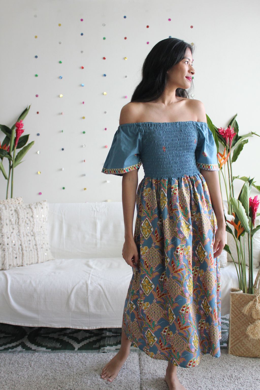 Hello Puteri of the Tropics! This gorgeous dress is really breezy and comfortable to wear! It is made of 100% soft gold-line cotton batik. This dress is labor intensive and handmade in our studio, just as where all our other garments are made with love. Only one of each color made, so if this beau is calling your name, do put it in your cart and check it out :)!