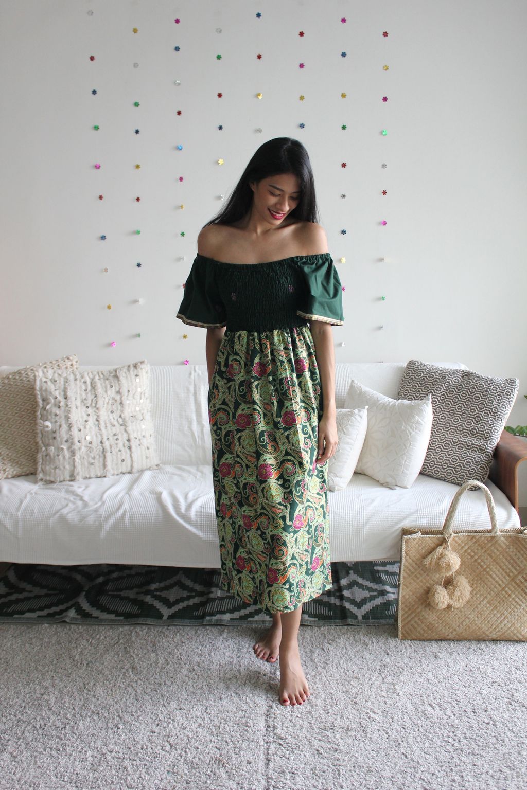 Hello Puteri of the Tropics! This gorgeous dress is really breezy and comfortable to wear! It is made of 100% soft gold-line cotton batik. This dress is labor intensive and handmade in our studio, just as where all our other garments are made with love. Only one of each color made, so if this beau is calling your name, do put it in your cart and check it out :)!