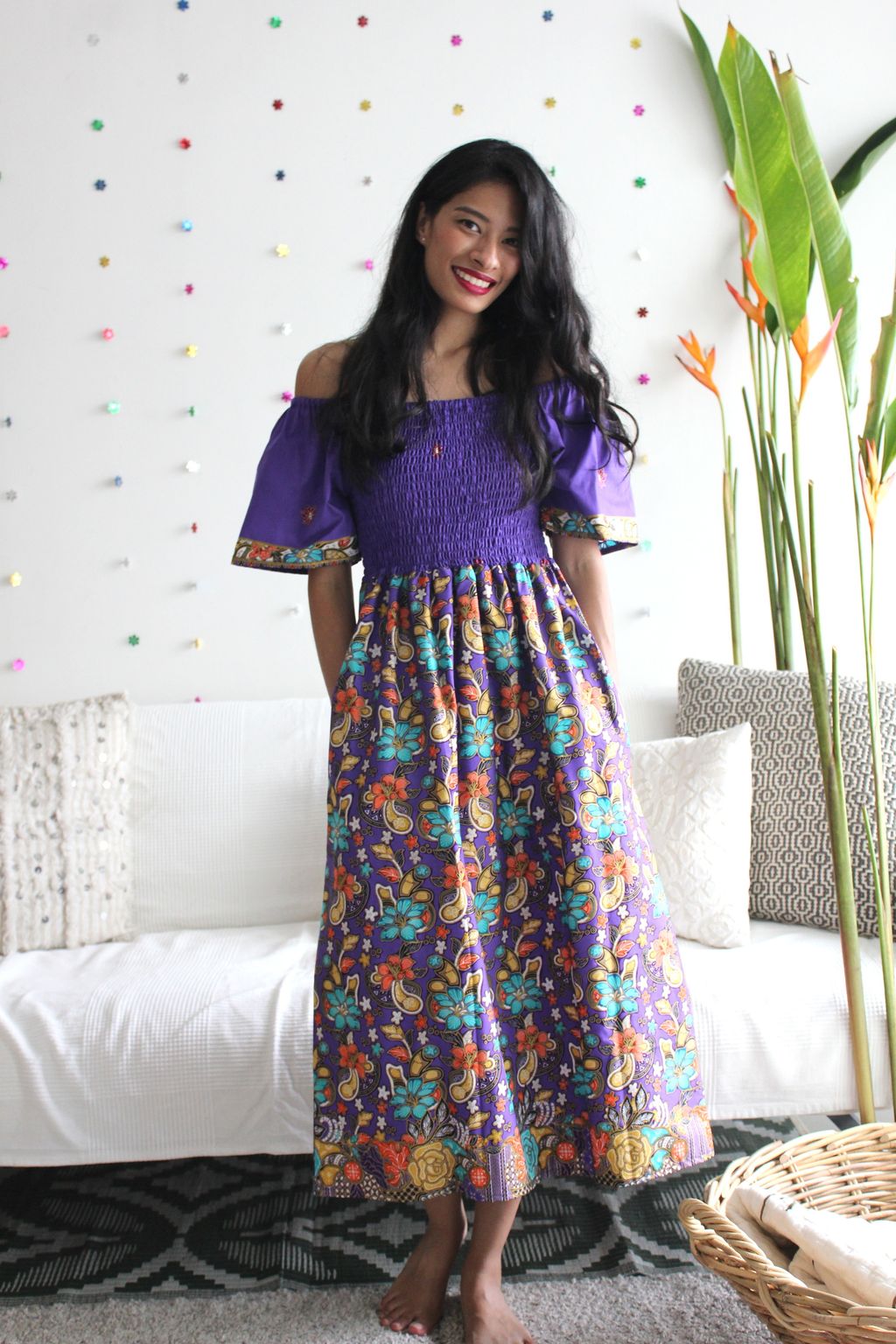 Hello Puteri of the Tropics! This gorgeous dress is really breezy and comfortable to wear! It is made of 100% soft gold-line cotton batik. This dress is labor intensive and handmade in our studio, just as where all our other garments are made with love. Only one of each color made, so if this beau is calling your name, do put it in your cart and check it out :)!